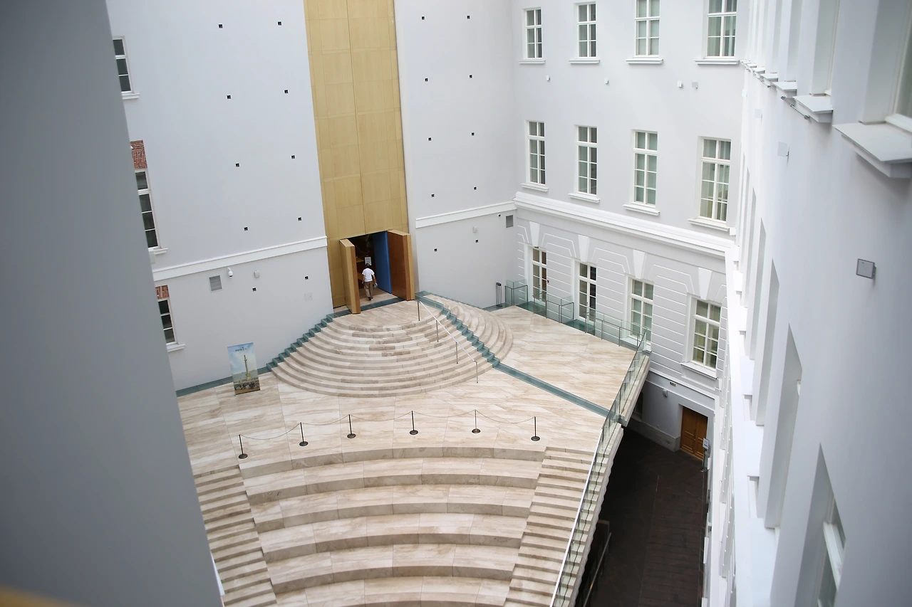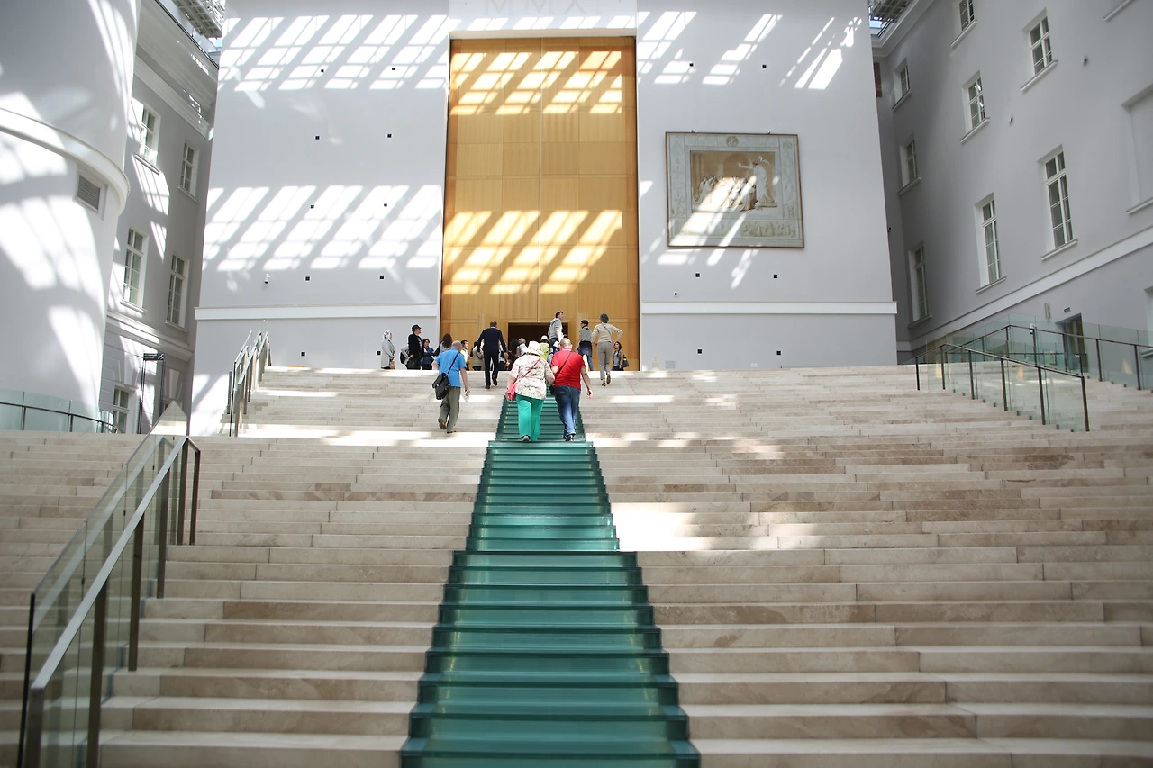 본관의 웅장한 계단을 따라 올라가면 거대한 샹들리에로 장식된 으리으리한 대접견실이 나온다. 그러나 신관은 본관처럼 휘황찬란한 금색의 장식이나 화려한 대리석으로 장식된 계단 같은 것은 없다. 단순한 색깔로 페인트가 칠해진 전시실이 오히려 그림을 돋보이게 한다.