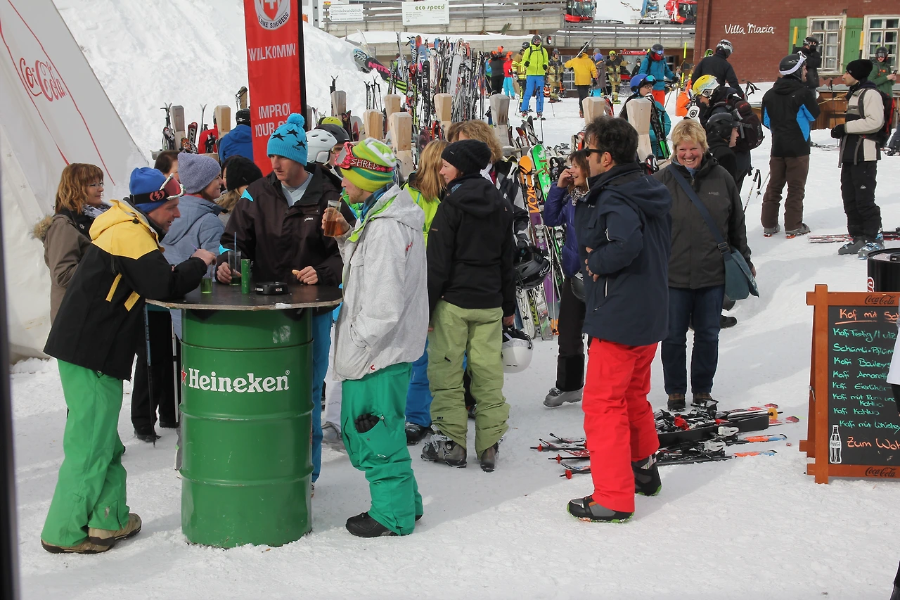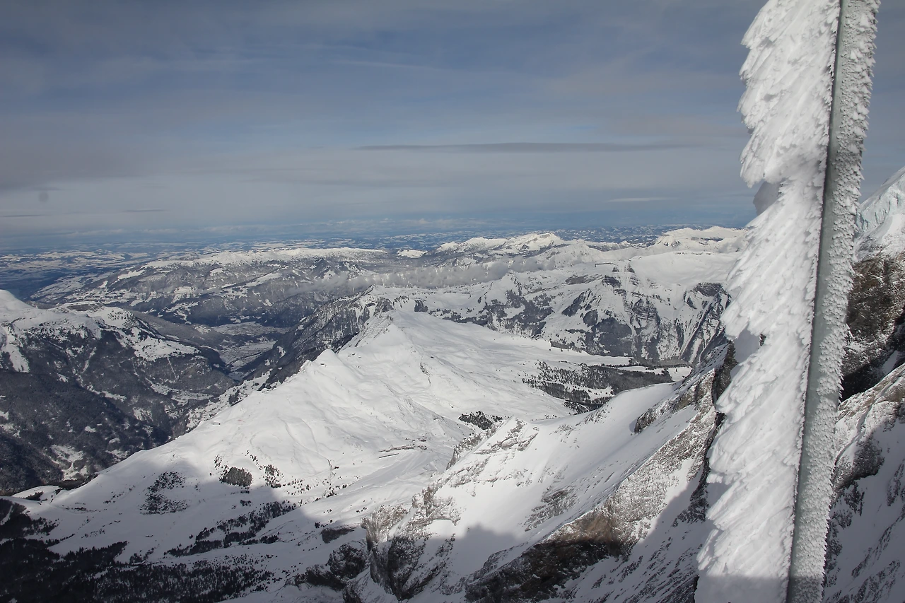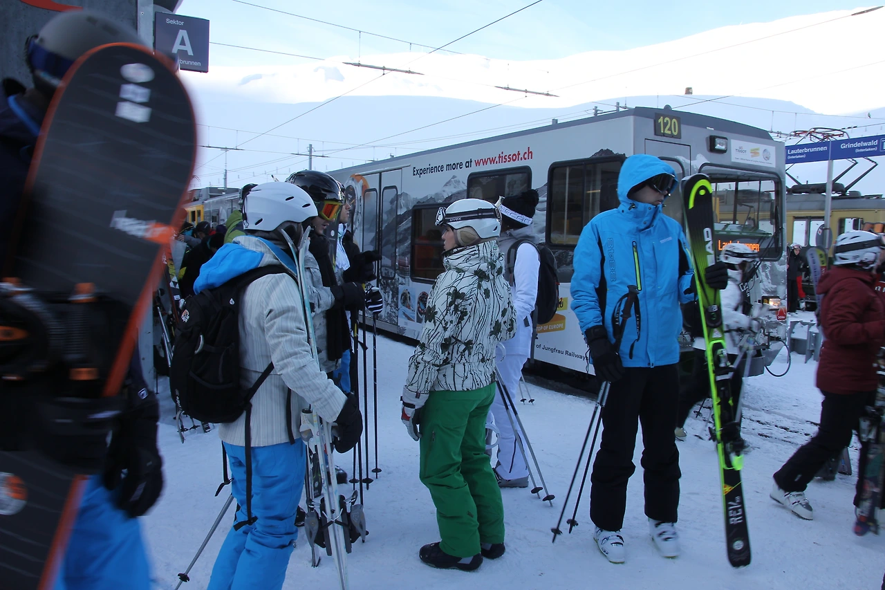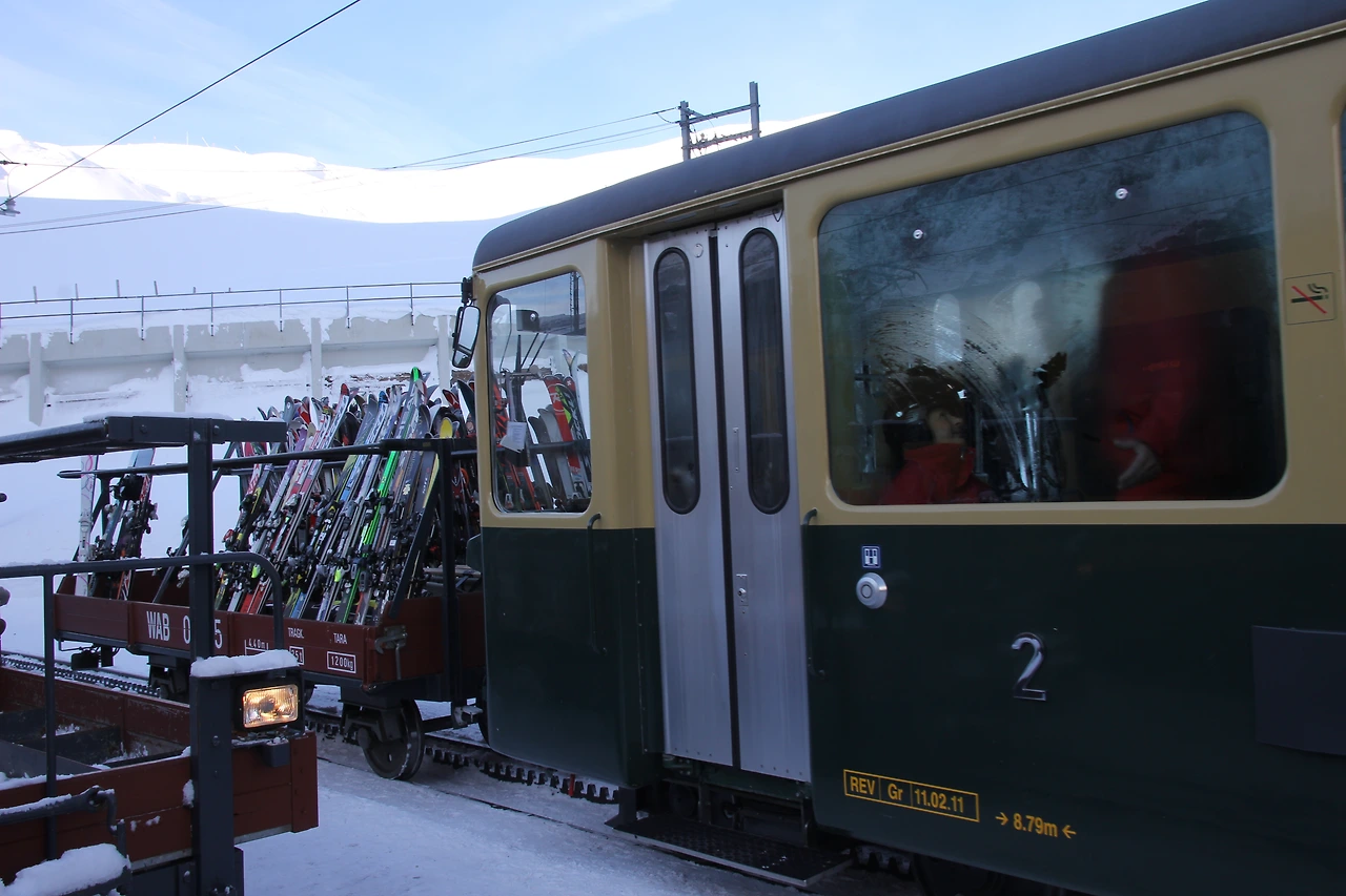 다음 날, 눈이 내려있었다. 눈을 쏟아낸 하늘과 호수의 빛이 어우러진 공기가 온통 푸르스름하다. 어차피 공짜로 탈 수 있는 유레일패스가 있으니 기차를 타기로 했다. 인터라켄 웨스트 역에서 오스트까지 10분쯤 걸린 듯했다. 우리는 라우터브루넨- 클라이네 샤이 텍-융프라우-크라이네 샤이 텍-그 린덴 발트 코스의 티켓을 구입했다. 한 여름의 융프라우는 끝없는 초원과 양 떼, 종 모양의 방울을 달고 있는 소, 들꽃, 하이킹하는 사람들과 서있는 집들이 아름다웠었다. 그러나 1월의 융프라우는 온통 하얀 설원에 울긋불긋한 스키어들의 옷과 눈부신 햇살이 눈을 뜨기 어렵게 만들고 있었다. 융프라우까지 가는 사람들보다 중간중간 내리는 스키어들이 열차를 빼곡하게 메웠다. 걸음마를 겨우 시작했을 밥한 아기 스키어부터 호호 할머니까지 다양한 컬러의 옷을 입은 스키어들이 시키와 폴대를 들고 스키 부츠를 신고 무거운 발걸음을 옮겨 다니고 있었다. 우리가 꼬마열차를 타고 융프라우 정상에 도착했을 때, 바람 한 점 없고 따뜻했다. 전에 융프라우에 올랐을 때에는 한 여름임에도 불구하고 가죽점퍼를 챙겨 입었어도 추웠던 곳이다. 우리는 오리털 파카에 목도리와 털실로 짠 빵모자, 장갑까지 중무장을 하고 올라갔다. 그런데 그날 그 시각, 해발 3400미터의 고산은 믿기지 않을 정도로 따뜻하고 온화했다. 무료로 받은 컵 라면 쿠폰으로 신 라면을 먹었다. 고산증세를 느꼈는지 친구 M이 메스껍고 약간의 어지럼증을 느낀다고 했다.