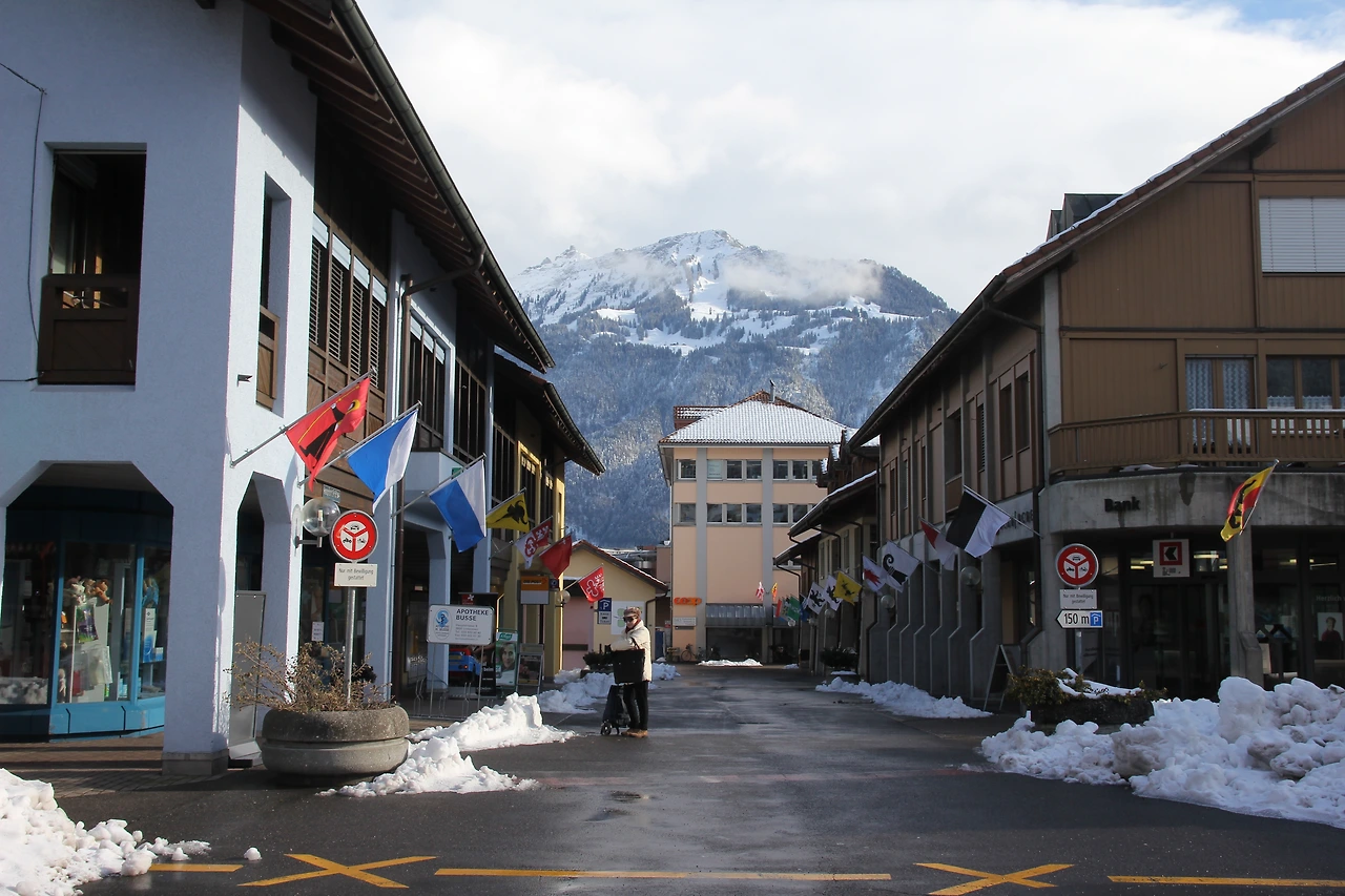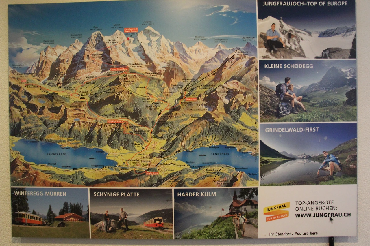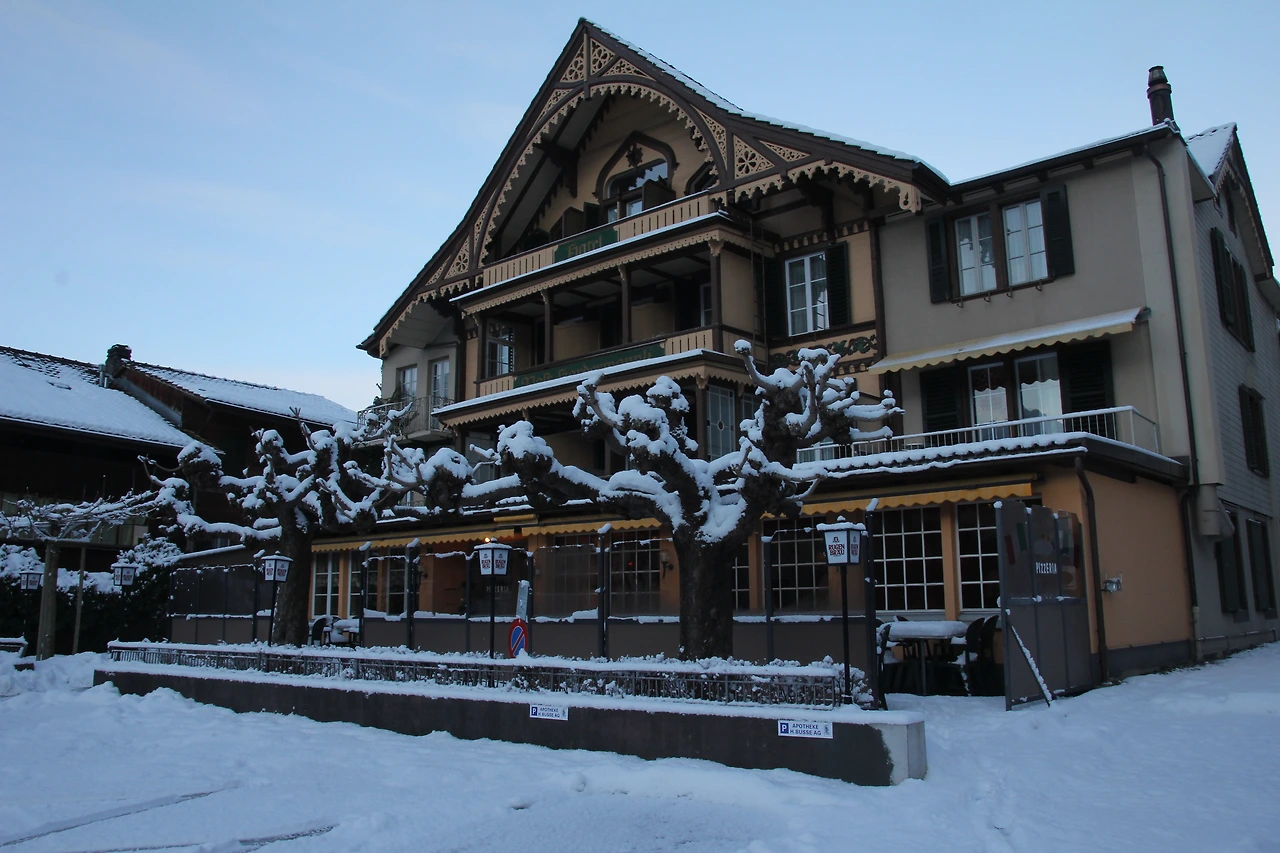 인터라켄 웨스트 역에 내려 로에슬리 호텔에 체크인했다. 스위스에서 흔히 볼 수 있는 목재 건축인 샬레 스타일의 아담한 호텔이다. 주인 부부의 젊은 시절 사진이 나무 벽면에 가득했다. 남편의 풍모가 산악인 같아 보였다. 샬레이니 엘리베이터는 당연히 없었다. 시종 미소가 떠나질 않는 상냥한 주인아줌마는 남편이 오면 우리의 러기지를 올려주겠다고 했다. 하지만 그게 언제가 될지 모르므로 우리가 낑낑대며 올렸다. 우리가 묵을 곳은 한쪽 천장이 약간 사선으로 기울어진 다락방 분위기의 3층이었다. 작으나마 주방이 있고 1층 다이닝에서 필요한 만큼 컵이나 접시, 수프 보울 등을 가져다 쓸 수 있어 편리했다. 주인이 준 무료 버스 티켓과 지도를 가지고 밖으로 나갔다.