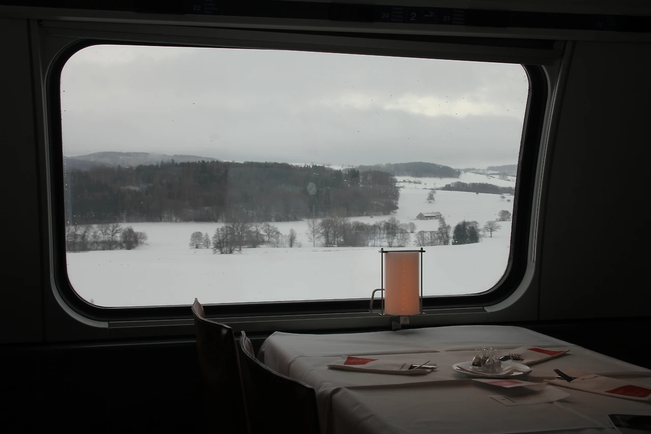 점심을 먹으러 2층에 있는 레스토랑으로 올라갔다. 펜네 오일 파스타와 토마토 고르곤졸라 파스타를 먹었다. 차창으로 보이는 풍경이 영화 같다. 흔들림이 거의 없는 고속 기차지만 사진을 찍기엔 불편했다. 그래도 카메라를 놓을 수 없었다. 마치 설국열차를 탄 듯 주위는 온통 눈으로 가득했다.