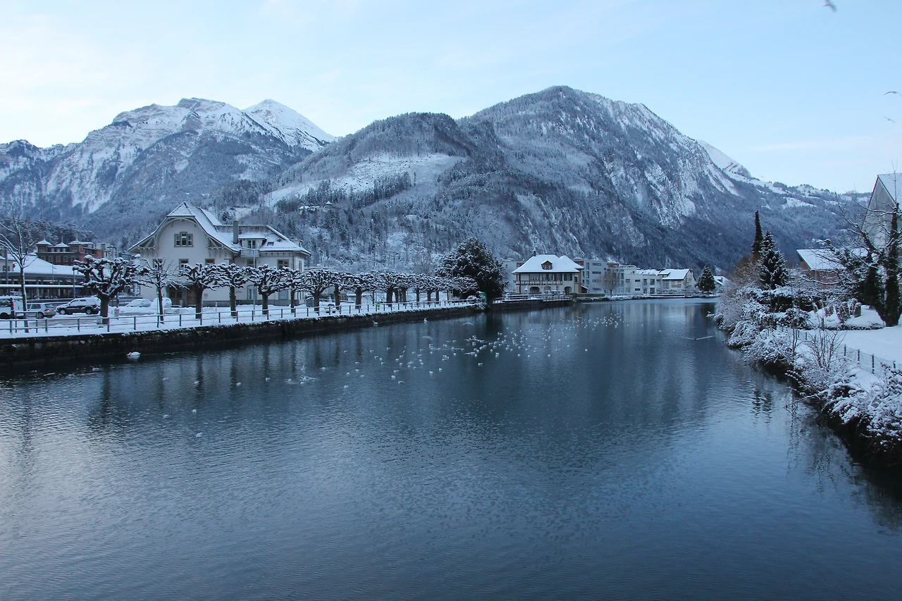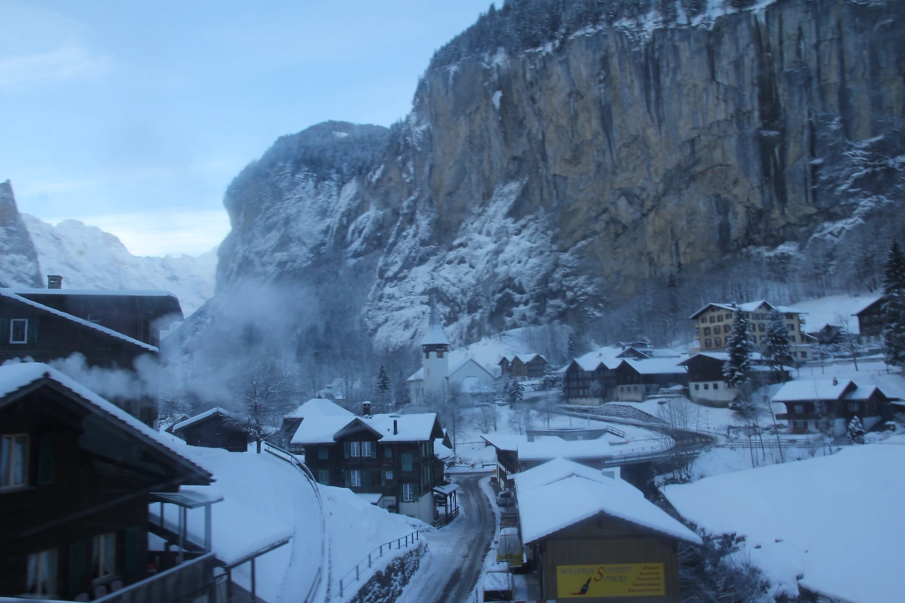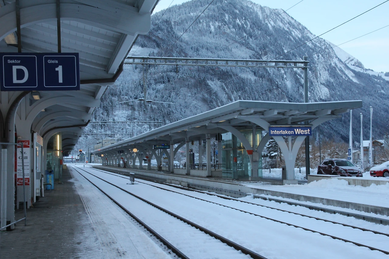 베른 역에서 인터라켄 가는 기차를 환승할 수 있는 시간은 단 3분, 기차에서 내려서 바꿔 탈 기차의 플랫폼을 확인하고 그쪽으로 넘어가기까지 시간 여유가 거의 없는 상황이었다. 일단 기차에서 내리자마자 나는 플랫폼을 확인하기 위해 전광판을 찾아 계단 아래로 내려갔다. 바로 옆 레인이 우리가 탈 플랫폼이었다. 서둘러 계단을 내려와 옆 통로 계단으로 올라가니 기차가 들어오고 있었다. 베른에서 인터라켄까지는 무채색의 설원이 펼쳐졌다. 지칠 줄 모르고 바라보았다.