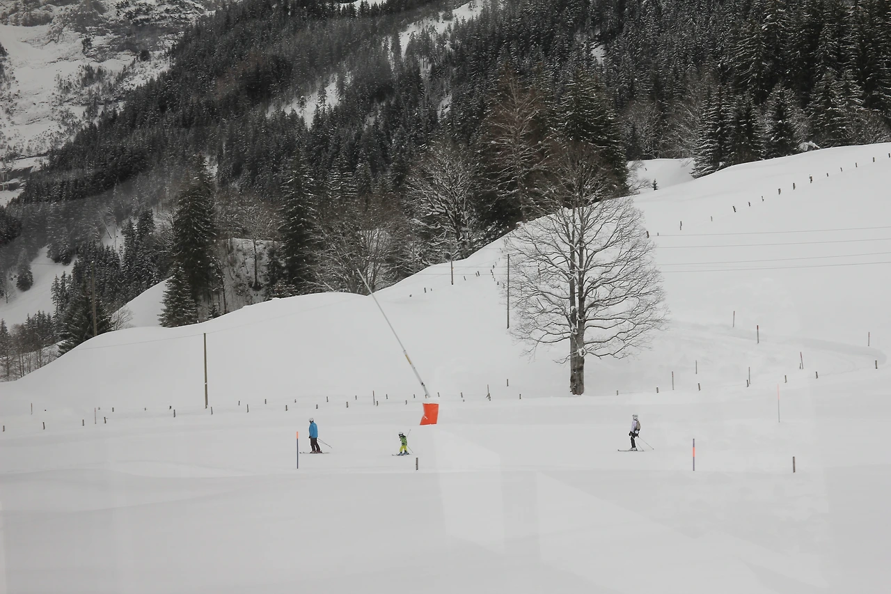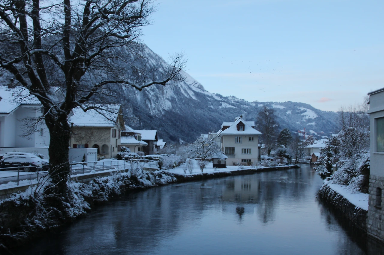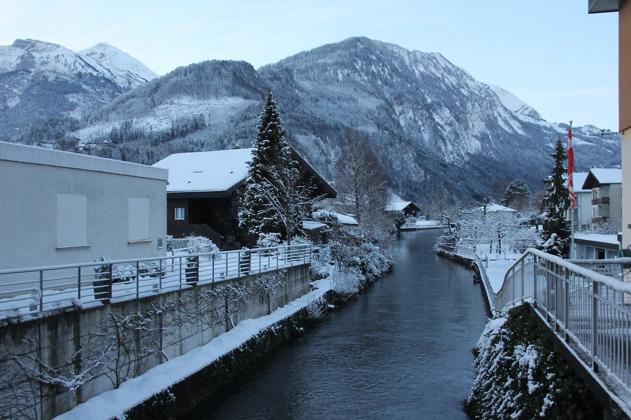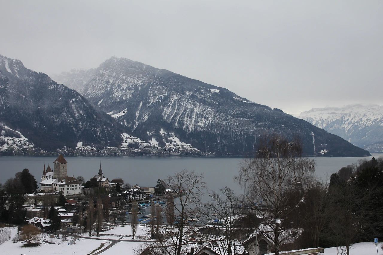 베른 역에서 인터라켄 가는 기차를 환승할 수 있는 시간은 단 3분, 기차에서 내려서 바꿔 탈 기차의 플랫폼을 확인하고 그쪽으로 넘어가기까지 시간 여유가 거의 없는 상황이었다. 일단 기차에서 내리자마자 나는 플랫폼을 확인하기 위해 전광판을 찾아 계단 아래로 내려갔다. 바로 옆 레인이 우리가 탈 플랫폼이었다. 서둘러 계단을 내려와 옆 통로 계단으로 올라가니 기차가 들어오고 있었다. 베른에서 인터라켄까지는 무채색의 설원이 펼쳐졌다. 지칠 줄 모르고 바라보았다.