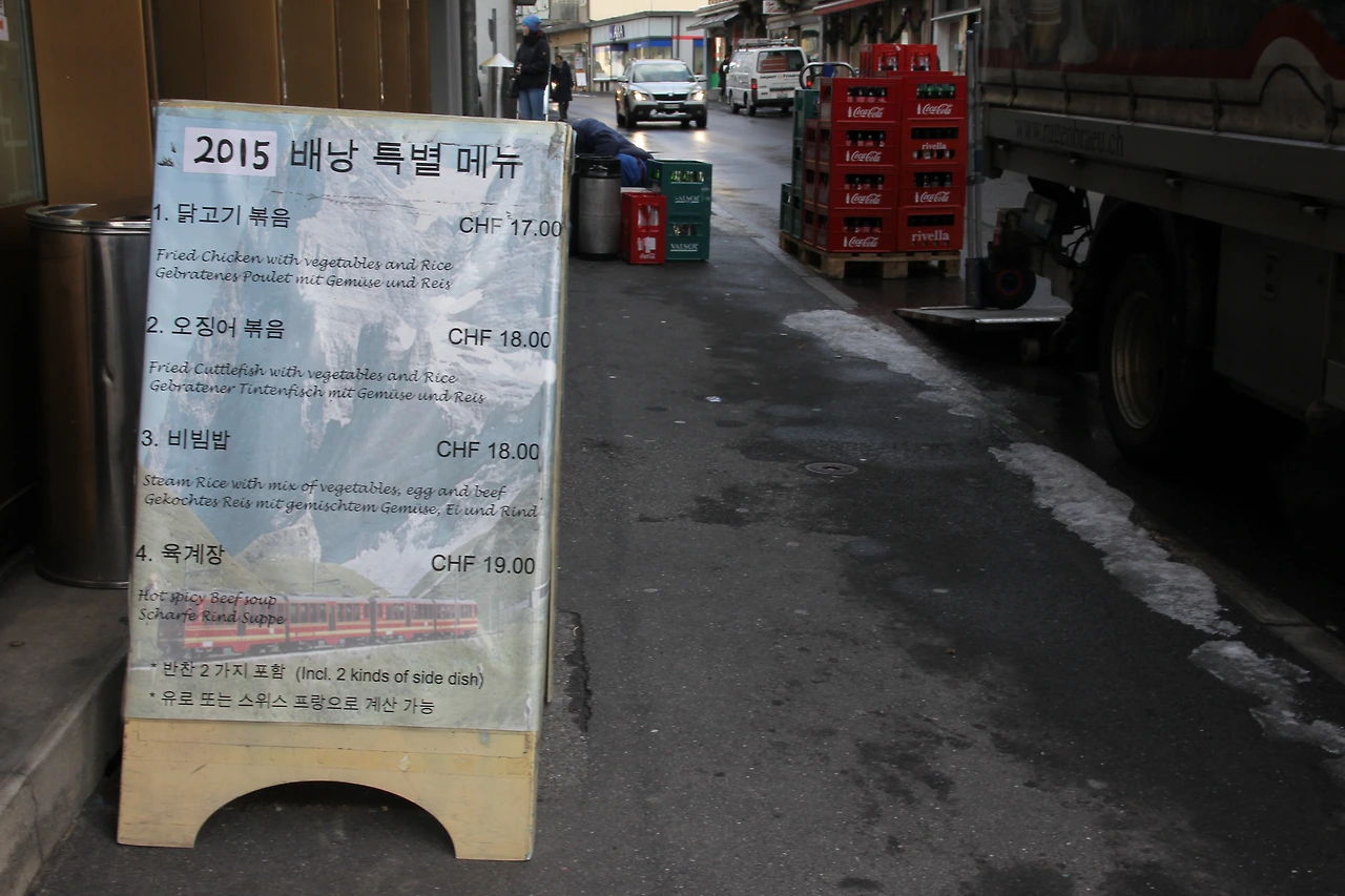 인터라켄에는 웨스트와 오스트 두 개의 역이 있다. 오스트 역에서 융프라우로 올라가는 기차를 탈 수 있다. 천천히 걸어 시가지를 돌아보았다. 오스트 역에서 융프라우 기차 시간을 알아보고 커다란 슈퍼마켓 coop에서 먹거리와 커피, 초콜릿 등 선물 몇 가지를 쇼핑했다. 호텔로 돌아올 때는 버스를 탔다. 쿱에서 사 온 치킨구이에 미역국을 끓이고 양상추 샐러드와 밥으로 저녁을 먹었다. 성당 종소리가 매 시각 정확히 울릴 뿐 사위가 너무도 고요했다.