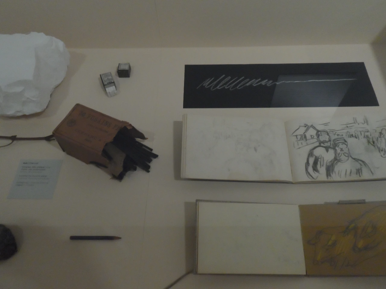 생전에 쓰던 팔레트와 목탄, 스케치의 흔적들을 돌아보다가