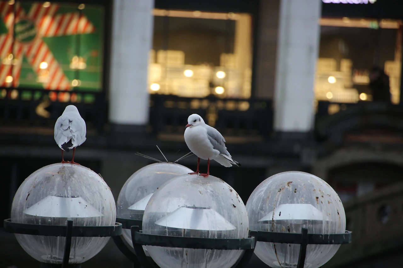 갈매기들이 비둘기처럼 도시를 날고 있어요.