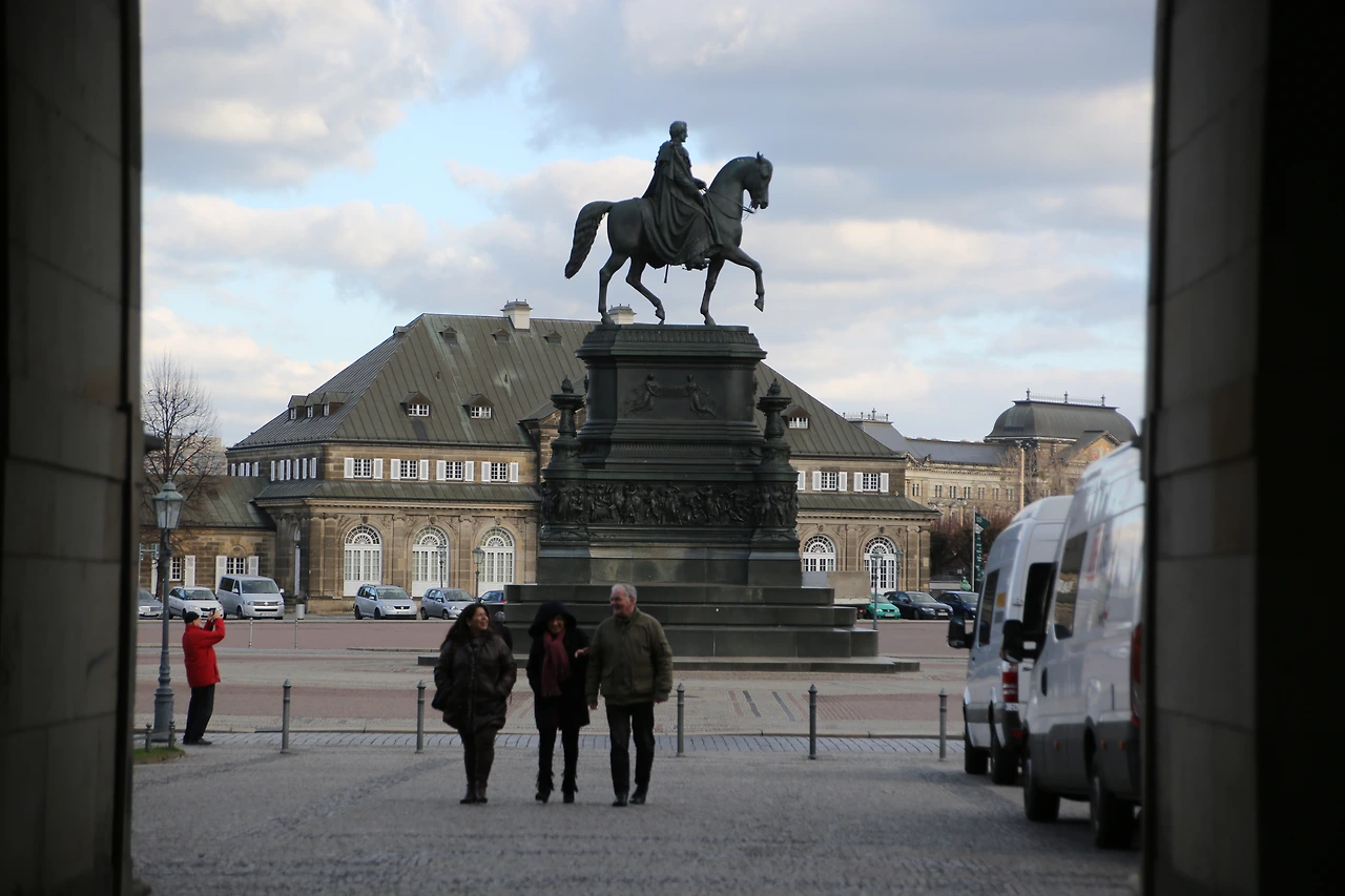 츠빙거 궁전과 젬퍼 오페라 하우스 사이의 광장에 위풍당당하게 서 있는 기마상은 작센의 왕 요한입니다.