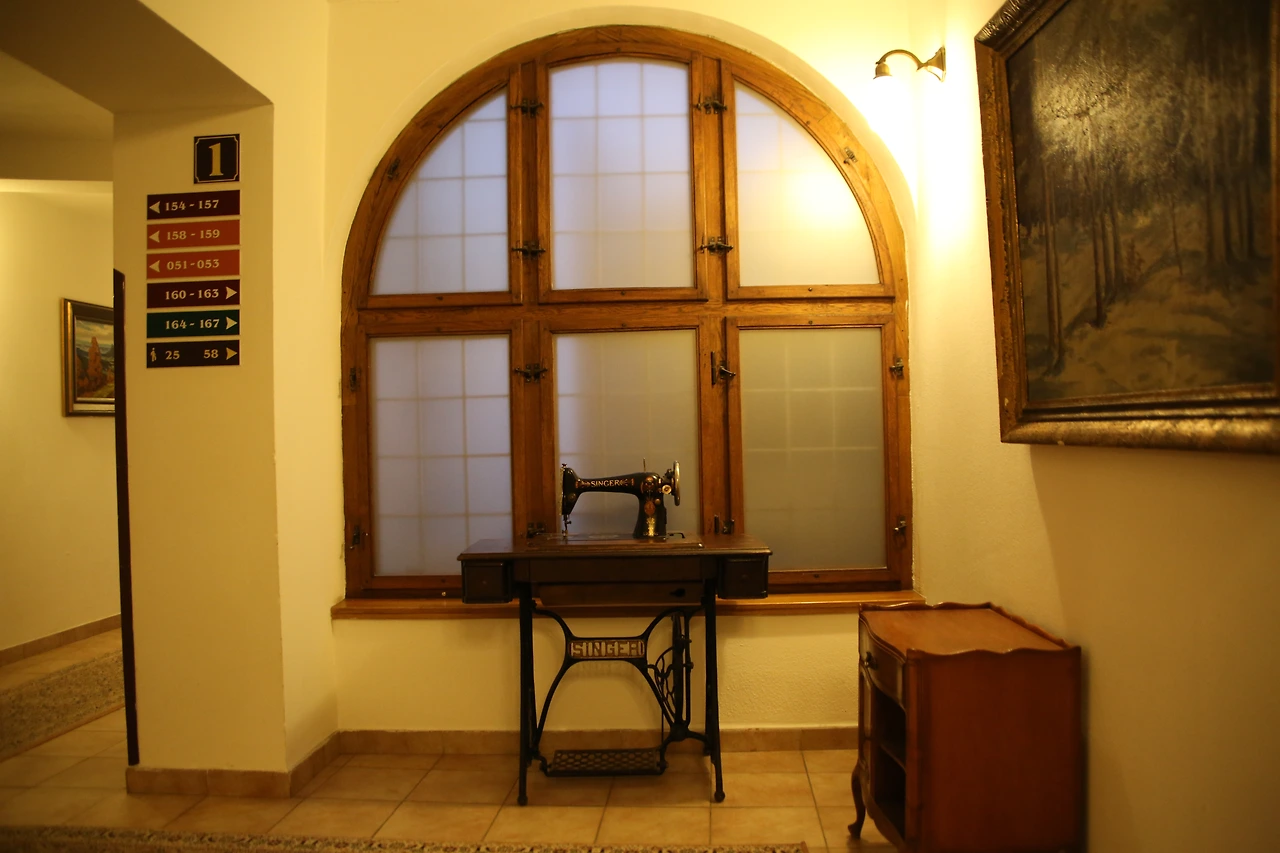 1851년부터 만들기 시작한 싱거 미싱이 호텔 복도에 놓여있어요.