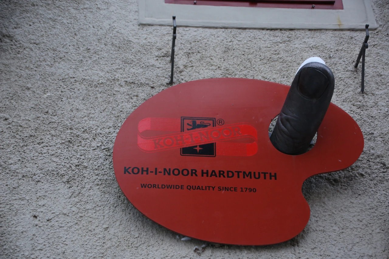 강렬한 빨강의 손가락 하나가 '바로 여기야~ ' 하는 1790년부터 문구용품을 만들어온 Koh - I - Noor,