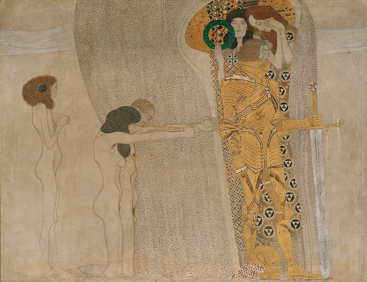 이 작품은 <베토벤 프리즈> 중 첫 번째 장면인 ‘행복의 열망’ 중 한 부분이다.