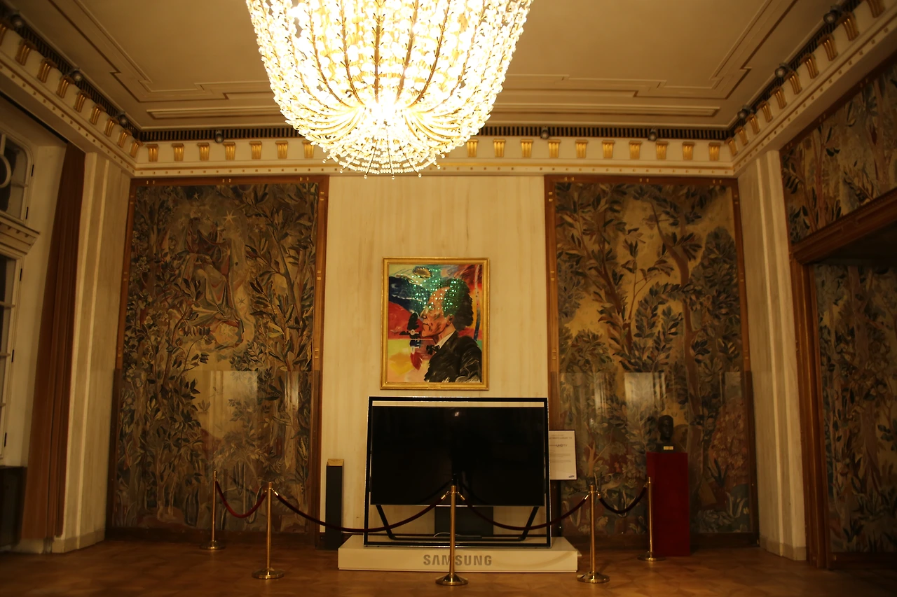 말러의 초상화가 태피스트리의 중앙에 놓여 있었습니다.