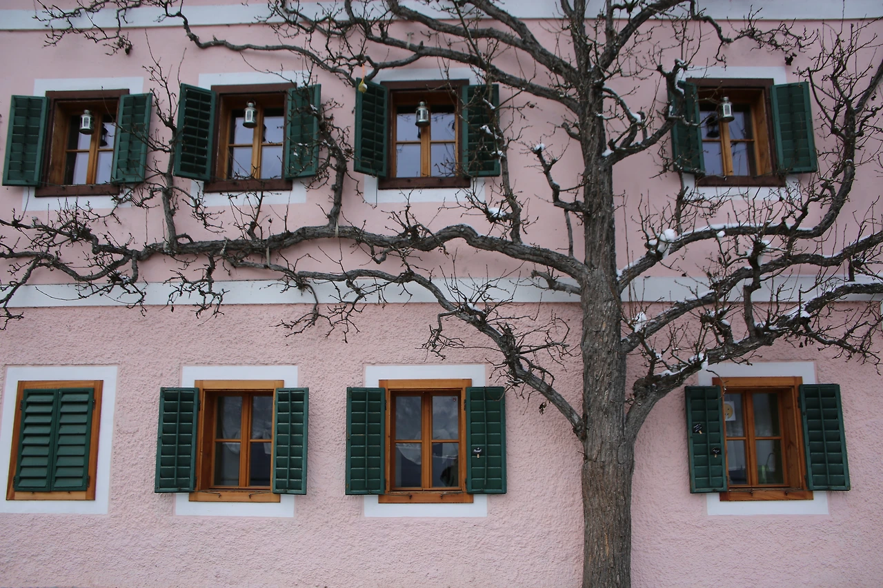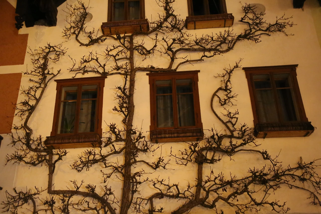 언덕을 깎아 만든 지역이라 그런지 나무들이 건물 벽에 팔을 벌린 듯 납작하게 자란 모습이 이채롭다.