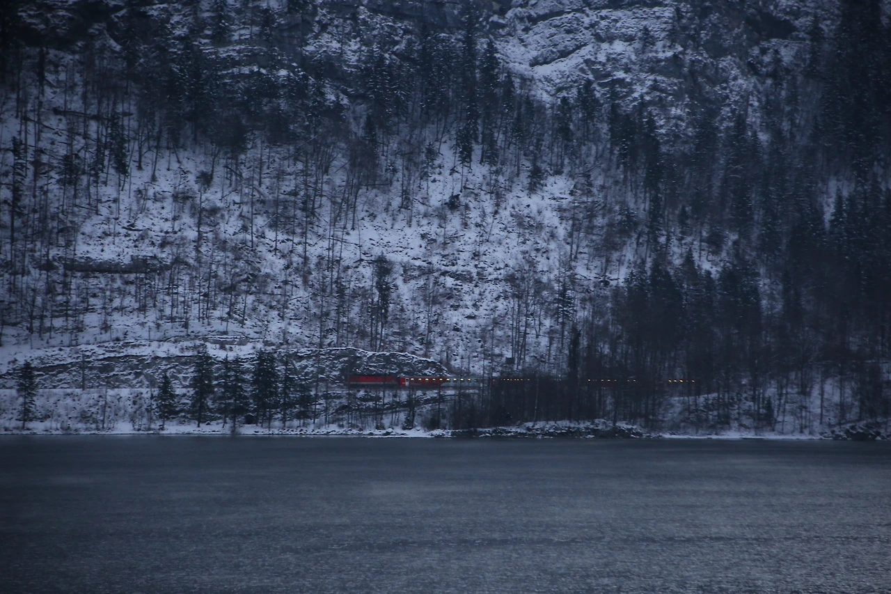 다만 호수 건너편에 달리고 있는 빨간 기차 불빛이 보였다.