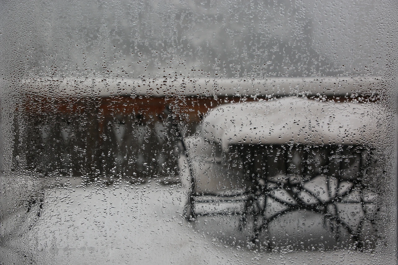 바깥과 안의 온도 차이가 크다 보니 발코니로 나가는 두 개의 유리 중문에 수증기 물방울이 그림처럼 어려있는 모습이 여간 예쁜 게 아니다.