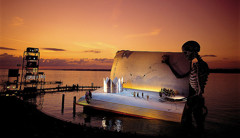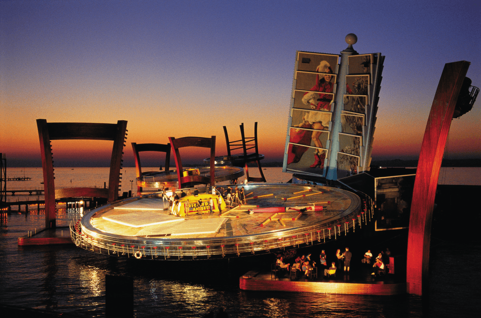 매년 여름, 호수의 물 위에 설치된 무대에서 오페라가 열리는 곳이 있습니다.
