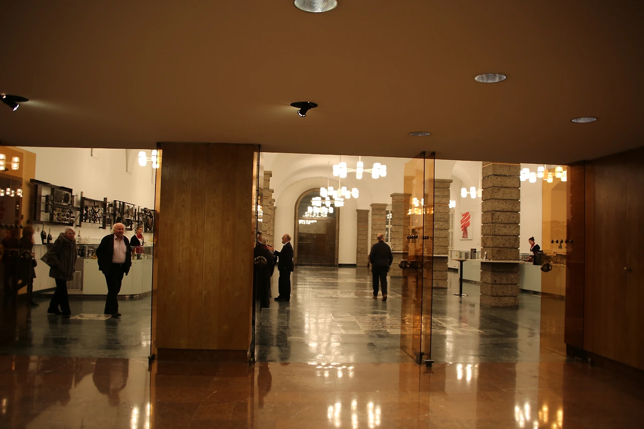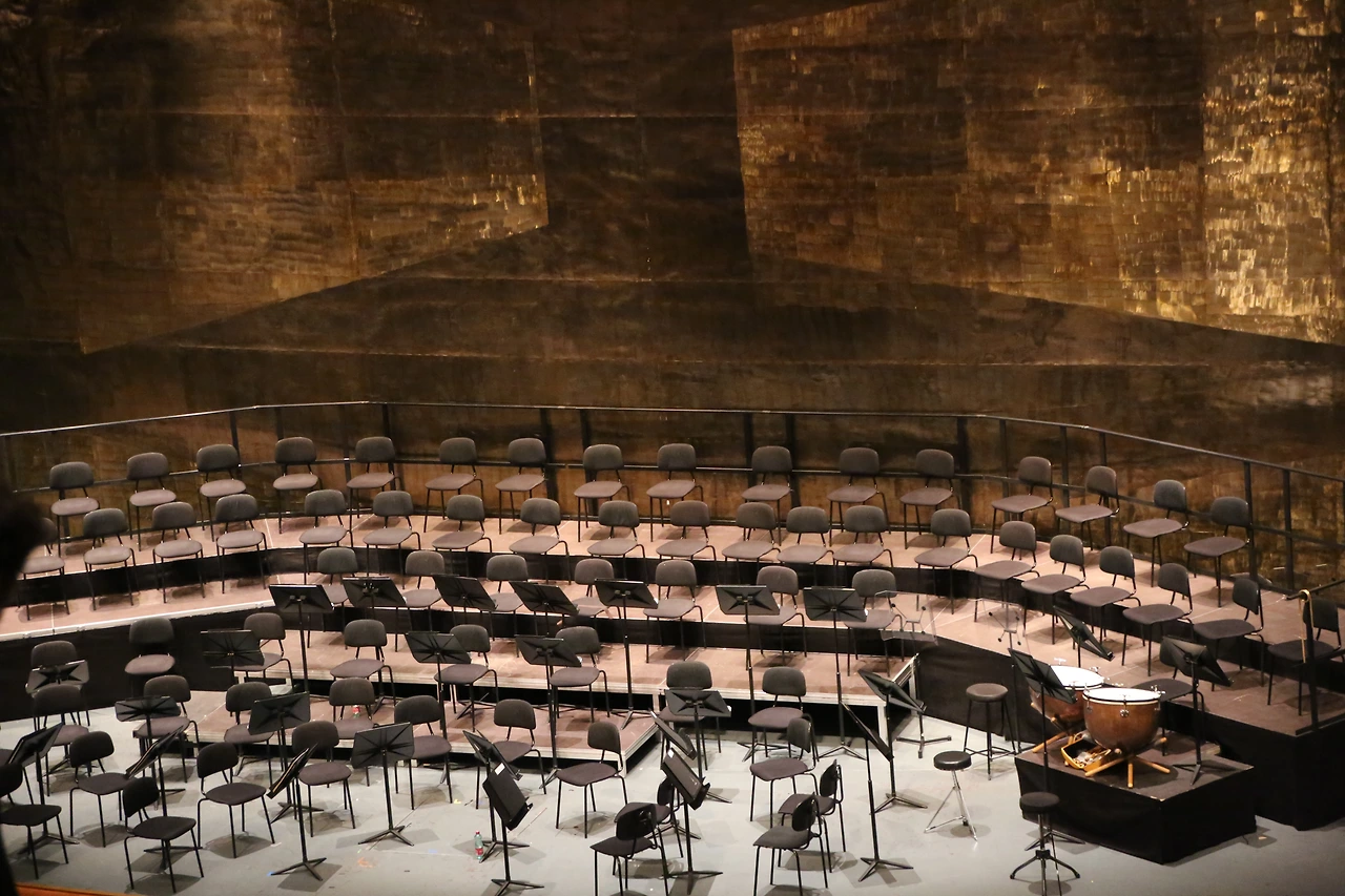 무대 전면 벽에는 금색의 금속판이 붙어있는데 뭔지 잘 모르겠어요.