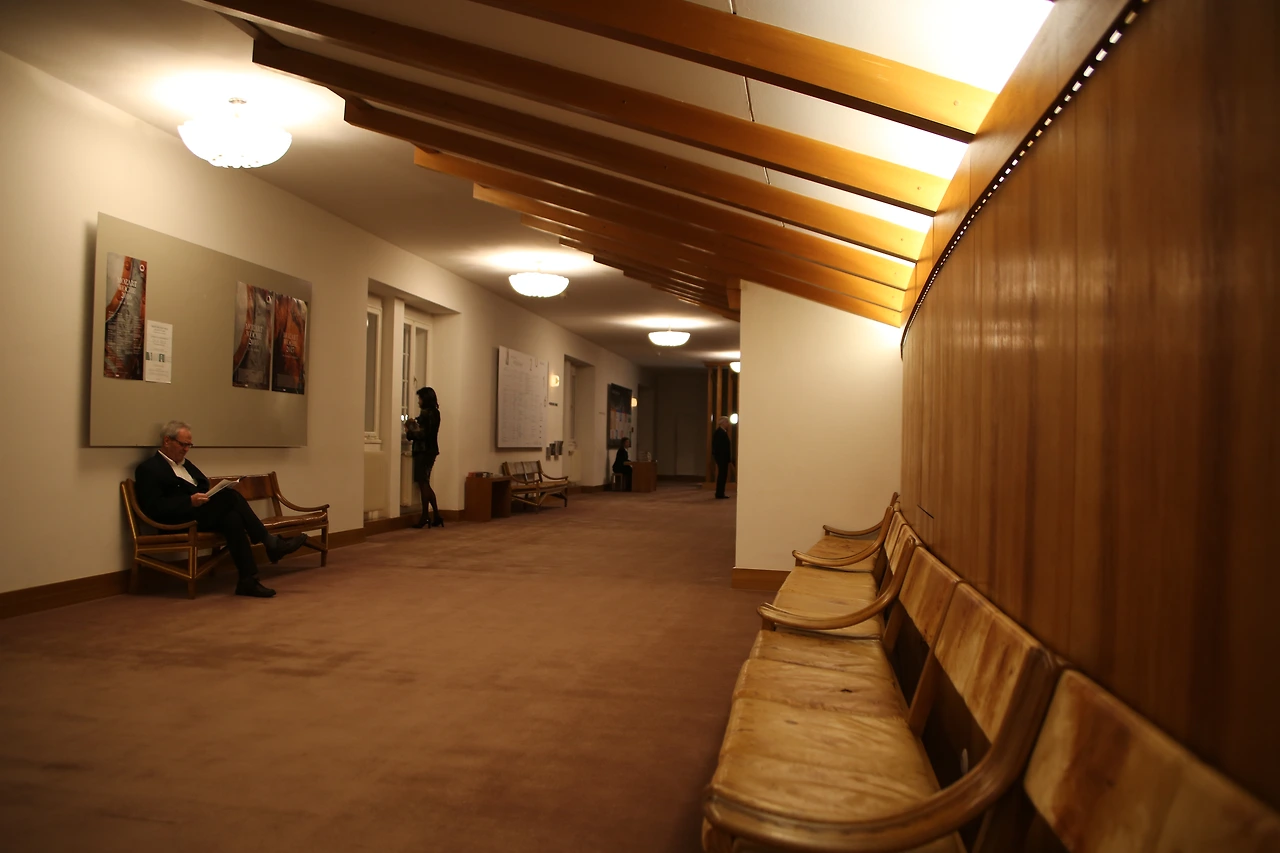 음악회가 시작되기를 기다리며 프로그램을 보는 신사는 버건디 컬러의 보 타이를 매었고,
