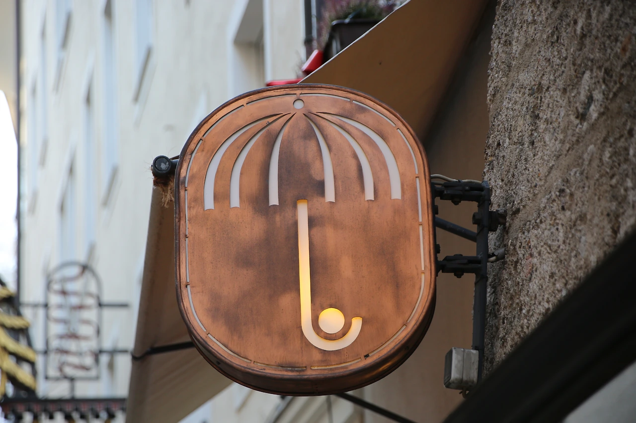 문맹인 사람이 많았던 옛날, 물건 모양의 간판을 만들어 걸었던 전통을 이어받아 아직도 쇠붙이로 만들어진 아기자기한 간판들이 눈길을 끌고 있지요.
