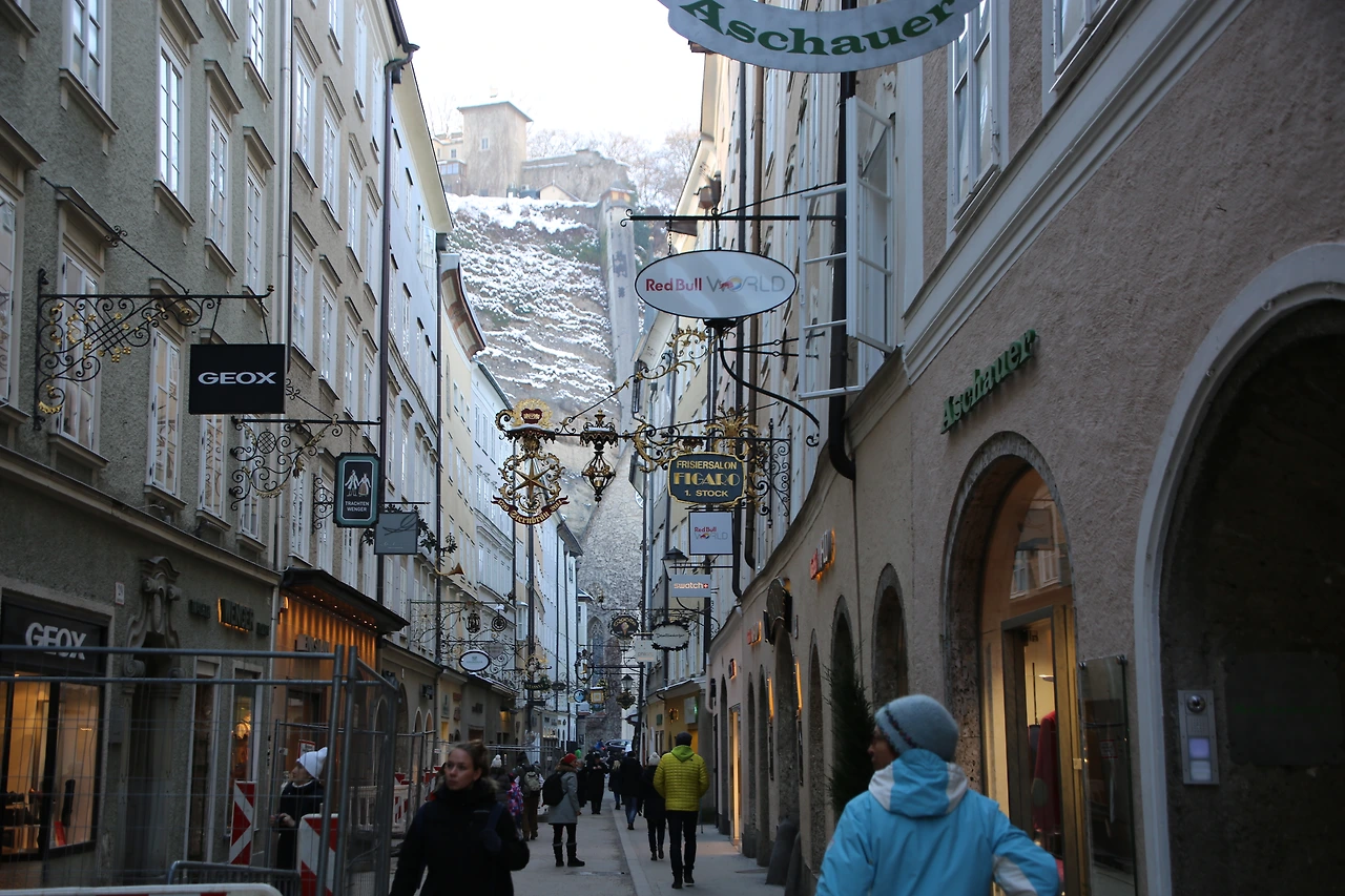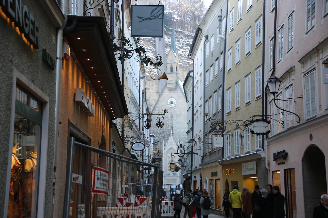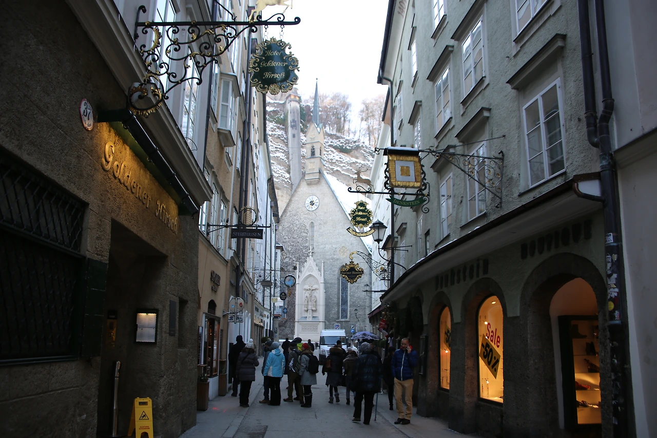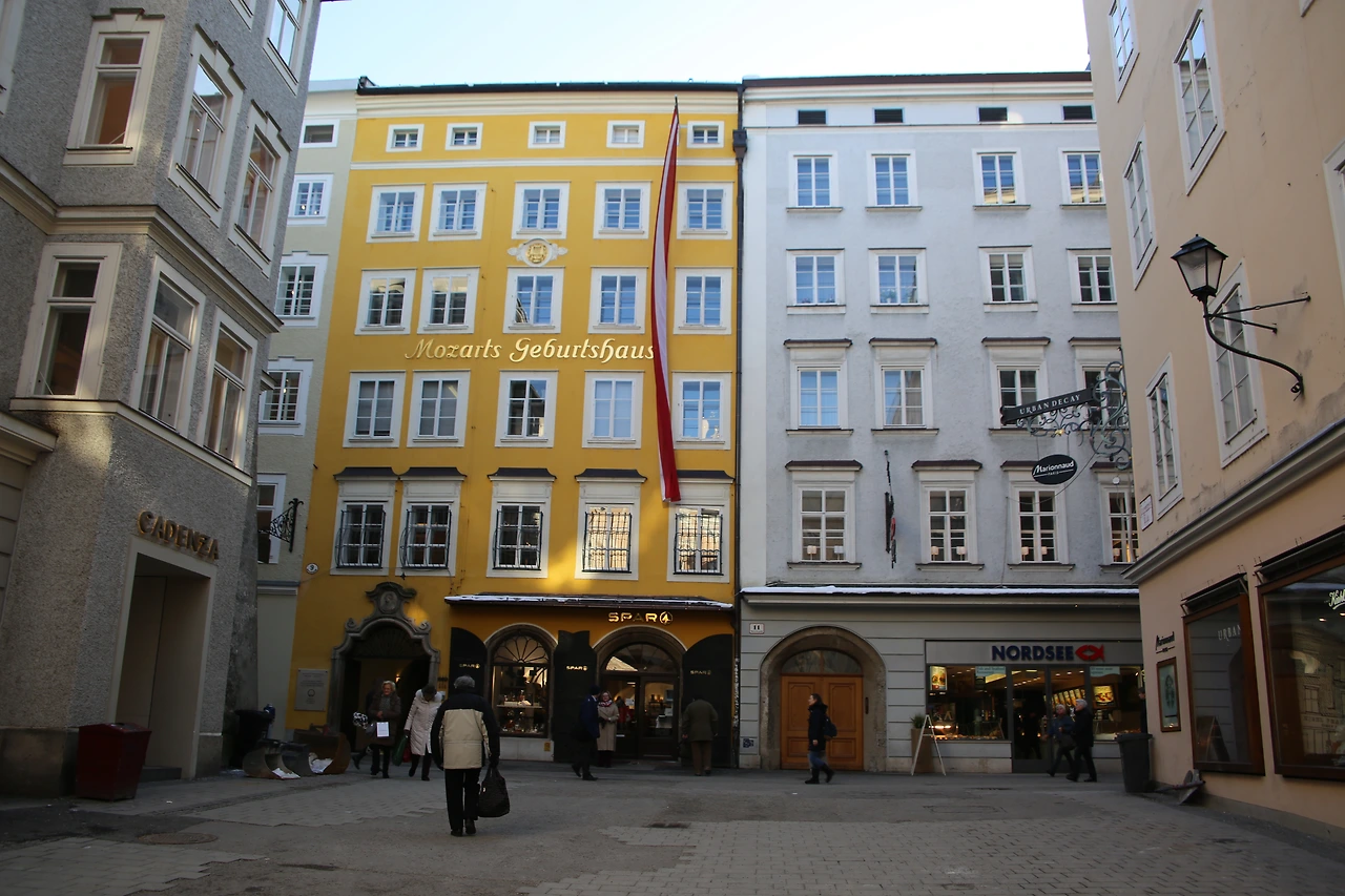 구 시가지의 게트라이데 거리에 노란색 6층 건물이 모차르트 생가가 있지만 별 달리 볼거리는 크게 없어 이번에는 들어가지 않았어요.