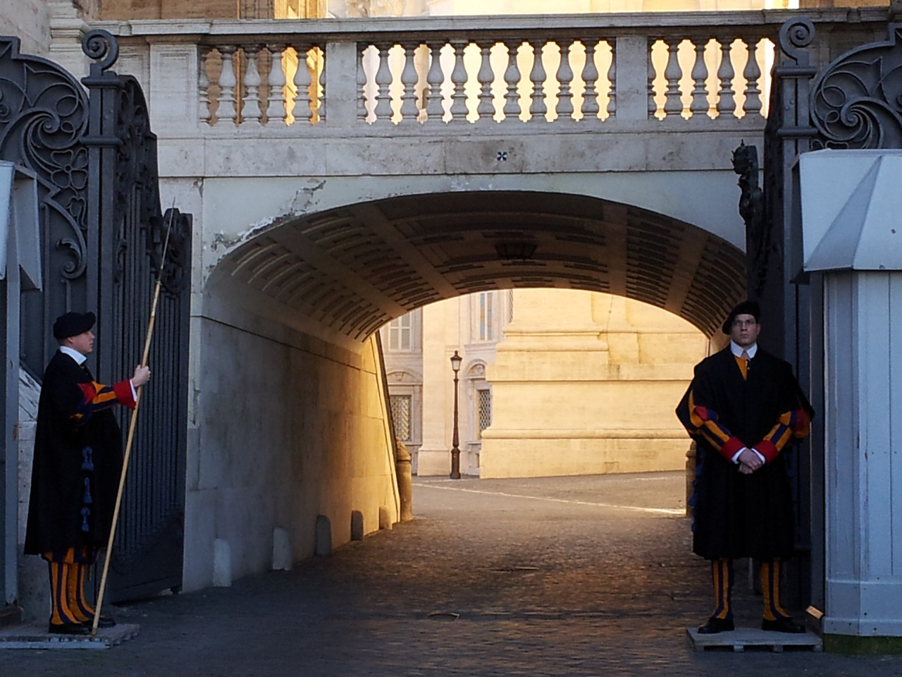 바티칸의 경비는 스위스 근위병이 맡는다. 1505년 교황 율리우스 2세가 성 베드로 성당을 개축하면서 공사기간 동안 취리히, 루체른 주와 용병 파견 계약을 맺었다. 훗날 카를 5세가 이끄는 군대가 로마를 침략하여 국가 전체가 위급한 상황이었는데, 스위스 용병들만이 목숨을 걸고 교황을 보호한 것이다. 그 후로 지금까지 스위스 근위병이 바티칸시국을 지키게 되었다고 한다. 바티칸 근위병이 되기 위해서는 스위스 태생의 가톨릭 신자이면서 신장 175cm 이상, 19~30세의 미혼 남성으로 4개 국어 이상의 조건을 충족해야 하니 엘리트 중의 엘리트다. 근위병들의 화려한 근무복은 미켈란젤로가 디자인한 것이라고 하니 그에게 패션 디자이너라는 직함도 붙여야 할 것 같다. 바티칸이 마치 미켈란젤로의 집처럼 그의 작품이 도처에 널려있다.