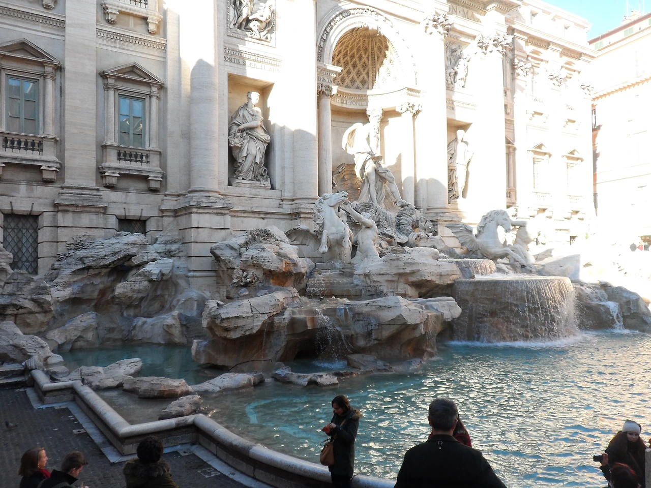 좁은 골목으로 들어서자 물소리가 조금씩 들리기 시작한다. 발길을 더할수록 물소리는 더욱더 커진다. 골목을 벗어나자 갑자기 확 트인 광장이 나타나면서 시원한 물소리가 귀에 가득 찬다. 분수의 조각상이 제대로 보이지 않을 정도로 사람들이 바글바글하지만 그것이 무엇인지 단박에 알 수 있다. 트레비 분수이다.