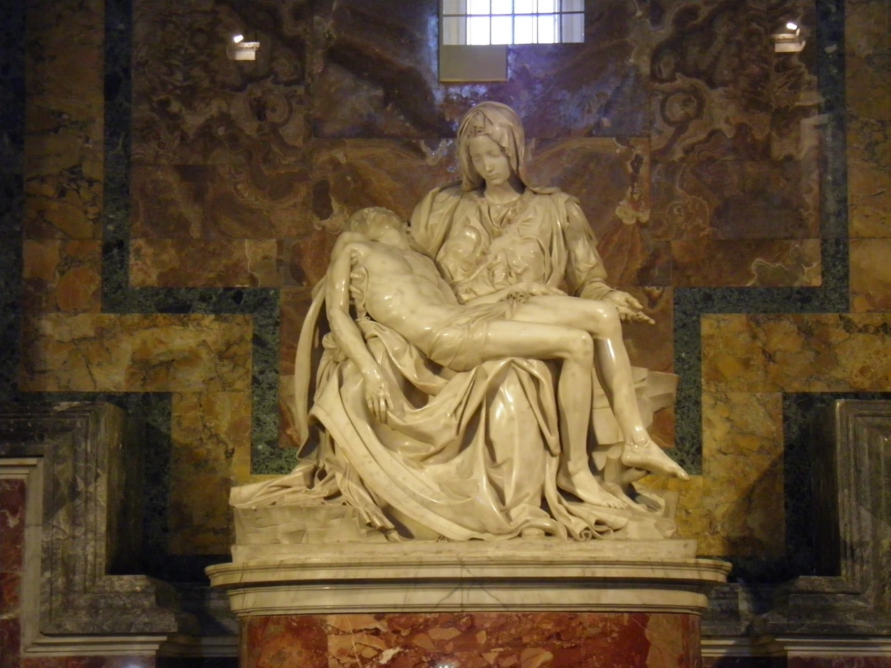 그는 조각가인가? 화가인가? 건축가인가? 그가 디자인한 메디치 가문의 예배당과 묘소, 도서관을 보면 마치 커다란 대리석 덩어리 하나가 꿈틀거리는 듯하다. 24세 때 완성했다는 조각 작품 피에타는 피에트로 성당 안쪽 방탄유리벽 속에 들어있다. 수년전 어떤 정신병자가 망치로 일부를 깨버린 이후 복원을 거듭하여 방탄 옷을 입게 된 것이다. 부드러운 고무 찰흙으로도 그토록 매끄럽게 만들 수는 없으리라. 예수의 근육은 물론이거니와 팔뚝의 실핏줄까지 도드라지게 표현되어 있다. 돌에서 영혼을 캐낸 사람 미켈란젤로, 그는 하늘 가장 높은 곳에 앉아있을 거라는 생각이 들었다.