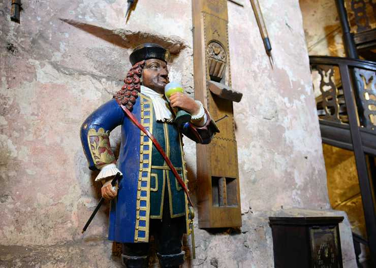 술통 맞은편에는 나무로 만든 난쟁이 인형 페르케오가 서 있다.