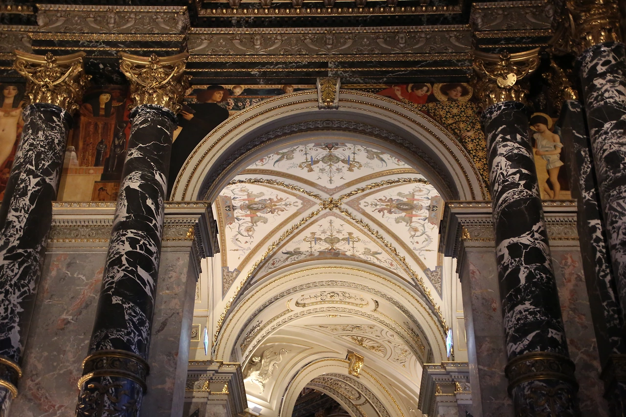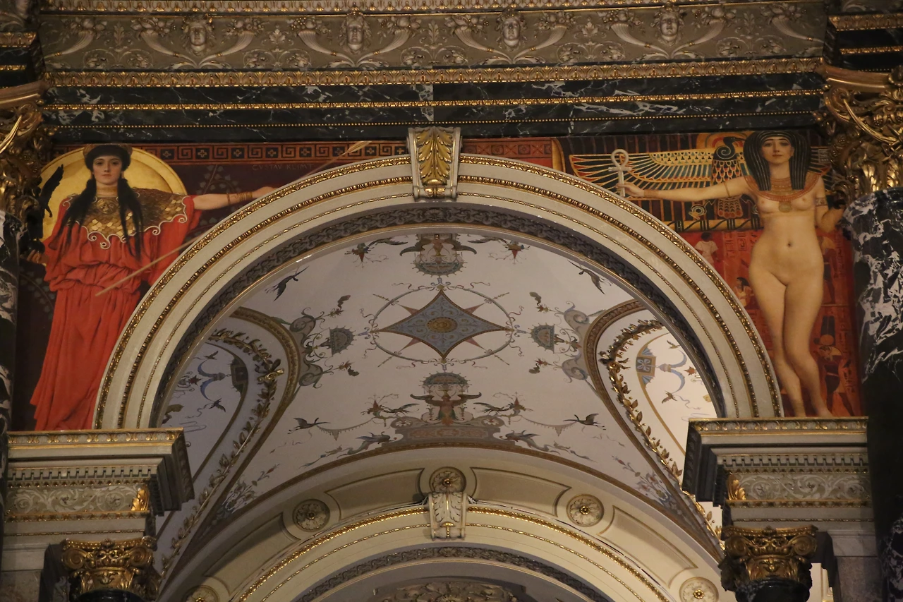 흰색 마블링이 들어있는 검은 대리석 기둥 위로 저절로 눈이 가는 건 그것이 클림트의 벽화라는 걸 알기 때문이지요.