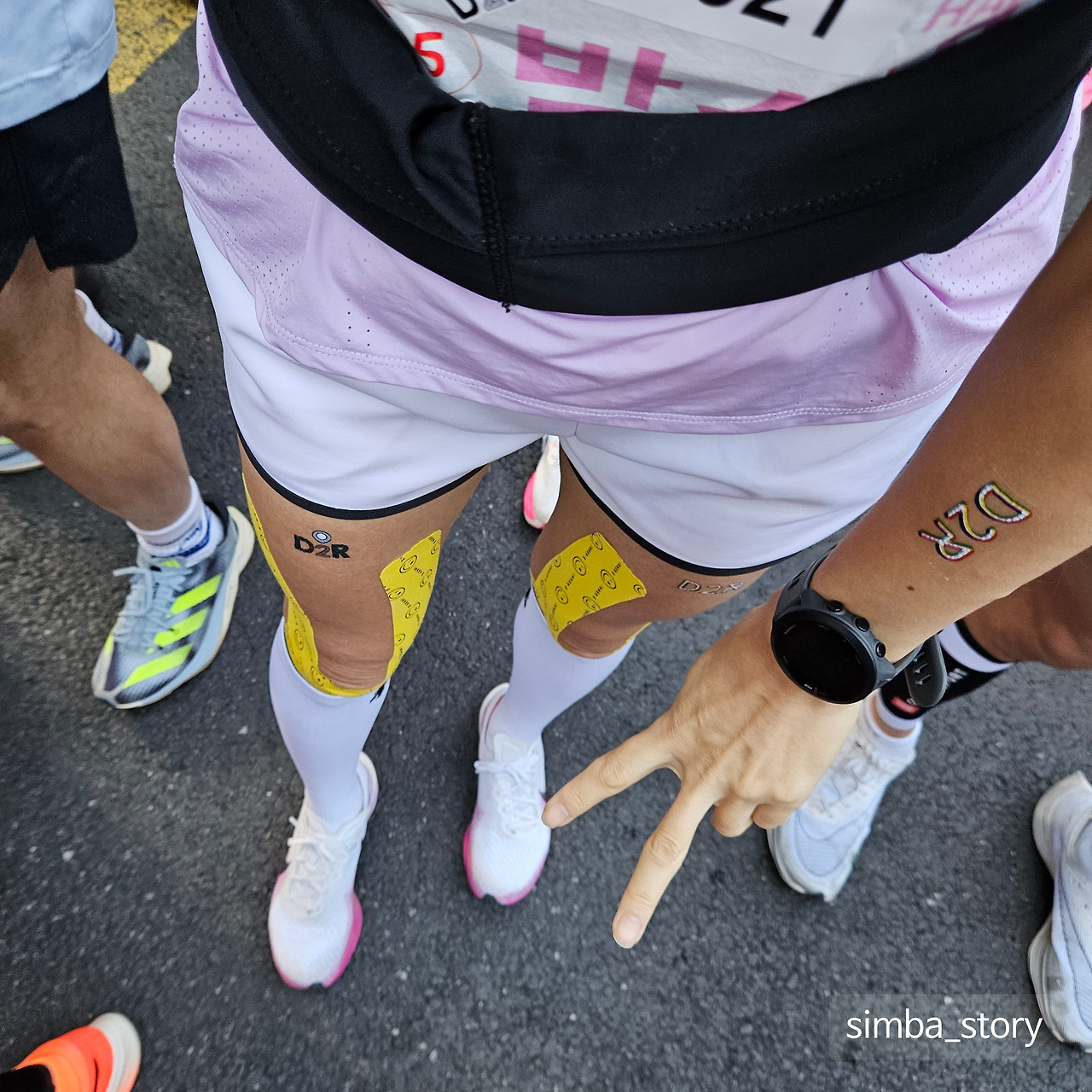 날씨마저 빛이 났던 그날, 10월이지만 해는 아직 강렬했다. 크루에서 10km뿐만 아니라 하프도 같이 나간 사람들이 꽤 있었고, 새벽에 테이핑을 야무지게 받고 살짝 몸을 푼 후 출발 대기선으로 향했다.