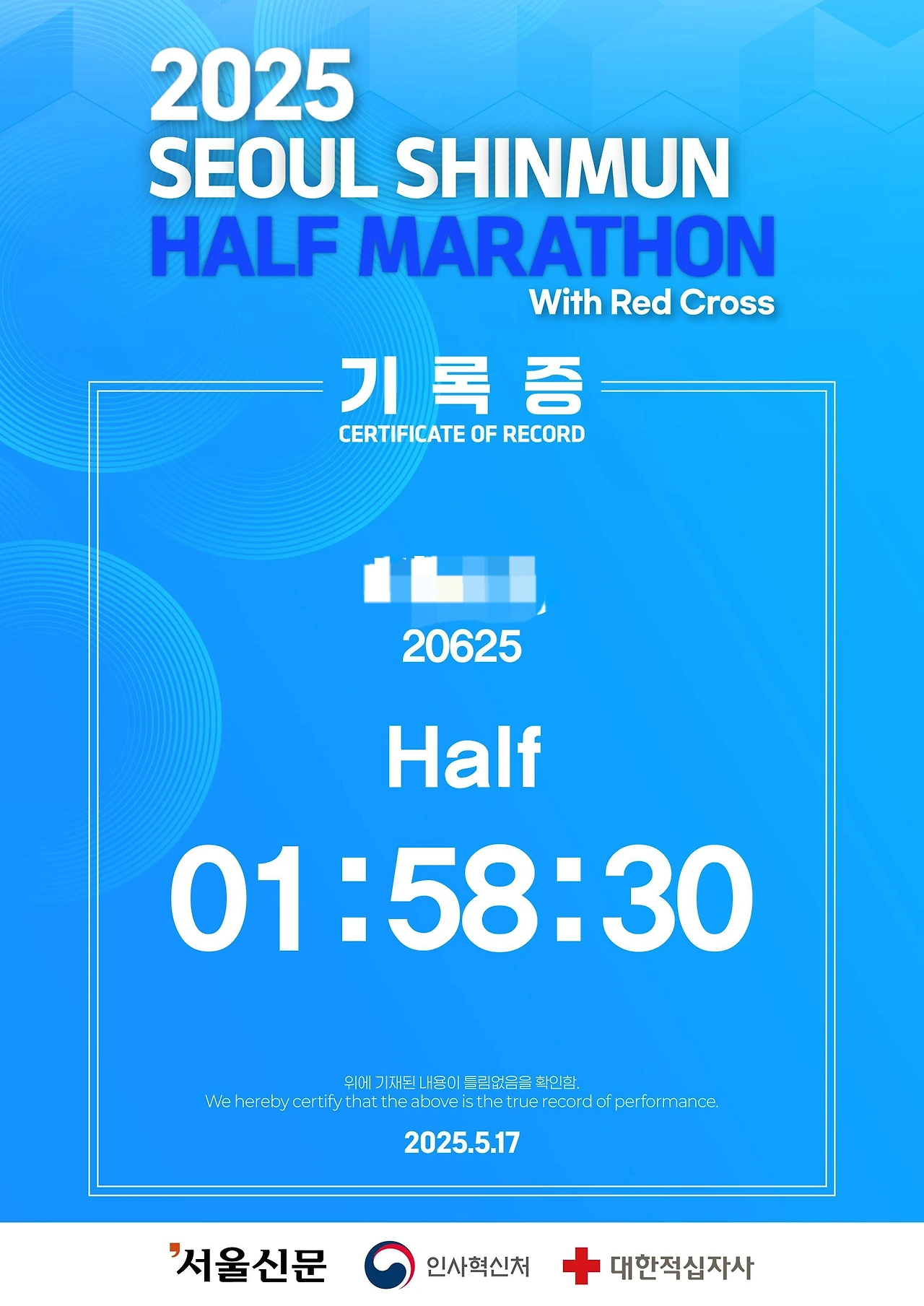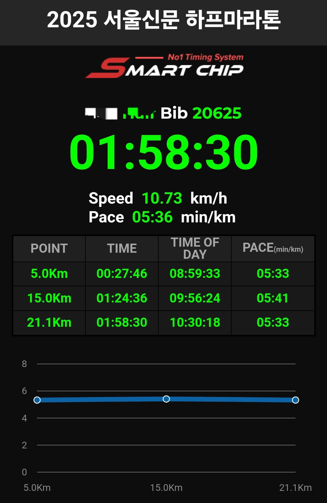 나의 첫 하프보다도 1분여 더 느린 기록.