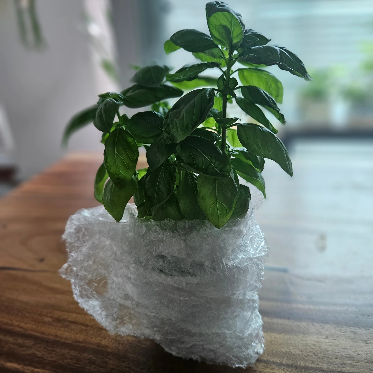 다섯뿌리나 심어진 싱싱한 바질 우리집에 온걸 환영해:)