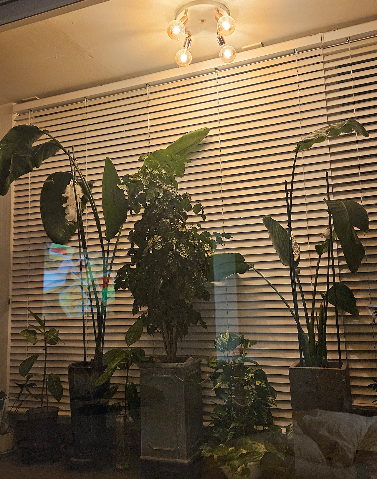 별도의 인테리어를 하지 못한 앞베란다에 데크를 주문해 하나하나 조립해 설치하고 화분을 예쁘게 배열했다. 미리 주문한 전구색 조명을 켜주니 내가 집이 더욱 싱그러워지는 것이다. 이 맛에 식물 키우지!