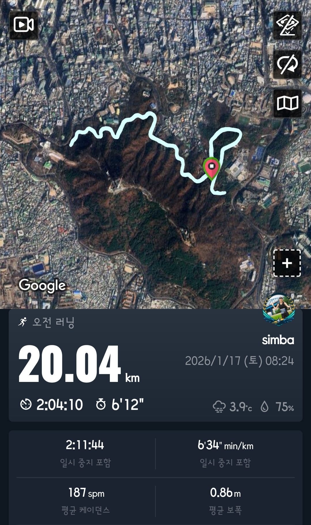 지난번 힘든 2회전을 겨우 마치고 이번에 설욕을 해보리라 다짐했었는데, 덜 추운 날씨와 페이서의 환상 같은 도움으로 남산 북측순환로 3회전을 성공적으로 마쳤다. 총 20km, 누적고도 800m에 달하는 대장정을. 시나브로 발전하고 있는 모습이 대견하다.