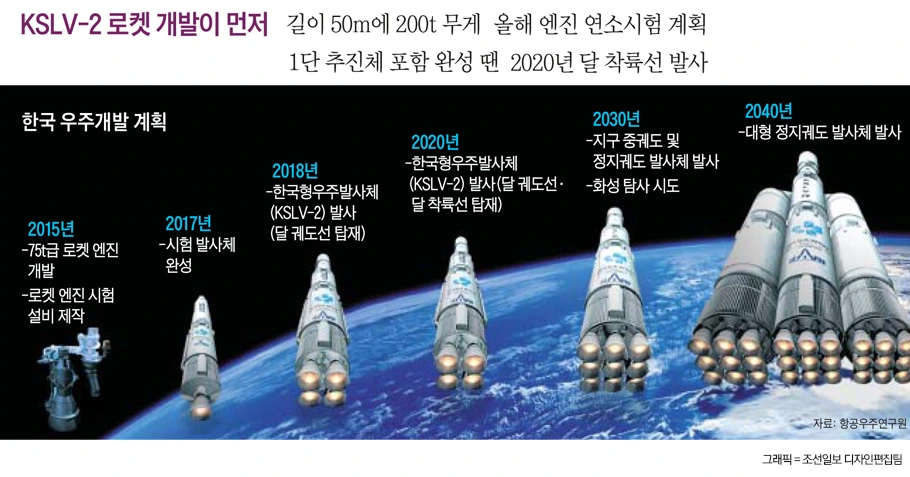 한국에서는 2018년까지 탐사선(KSLB-ll)을 개발하여 위성을 우주에 올리고 2020년에는 달 착륙선을 보내 사람을 달에 보내겠다는 계획을 하고 있다. 앞으로 있을 한국의 우주과학 발전. 기대해 보도록 하겠다.