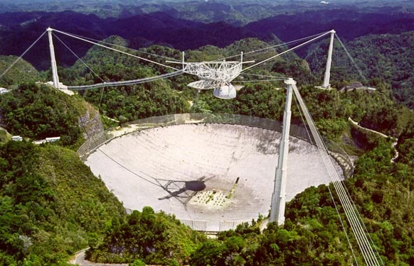 세상에서 가장 큰 전파 망원경, 아레시보 전파망원경. 크기가 에펠탑(324m)을 눕혀놓은 크기와 비슷하다.