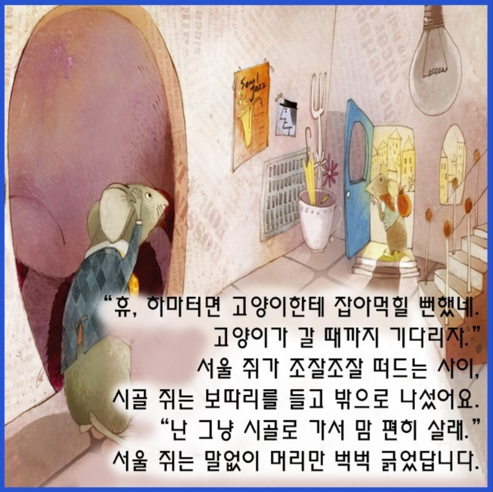 어렸을 때 읽었던 이솝 우화 중 [시골쥐, 도시쥐(서울쥐)]에 담긴 통찰이 종종 생각났다.