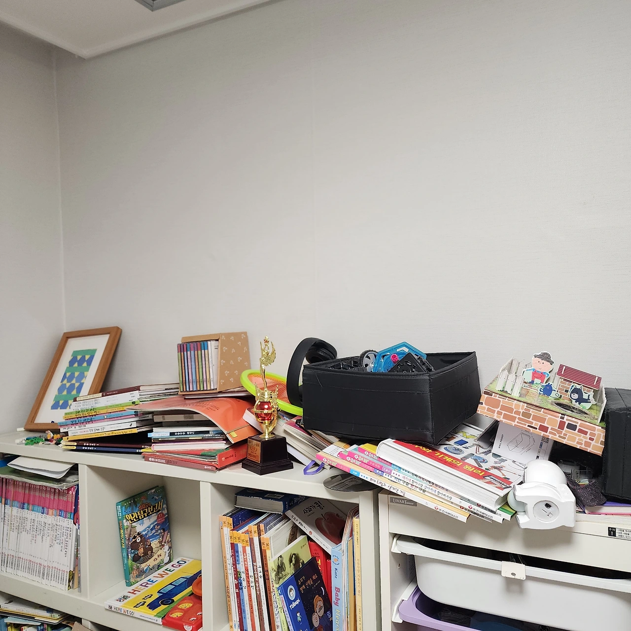 정리를 해보니, 이렇게 쉬이 너저분해지는 원인이 파악된다. 애들이 책을 읽고 나서 바로바로 제자리에 꽂아놓기만 해도 정리정돈을 위한 고생의 절반을 줄일 수 있을 것이다. 책의 위치가 암묵적으로 정해져 있는데, 이것도 라벨을 붙이거나 아이들과 함께 이야기하여 제자리에 대한 공동 합의가 이루어져야겠다.
