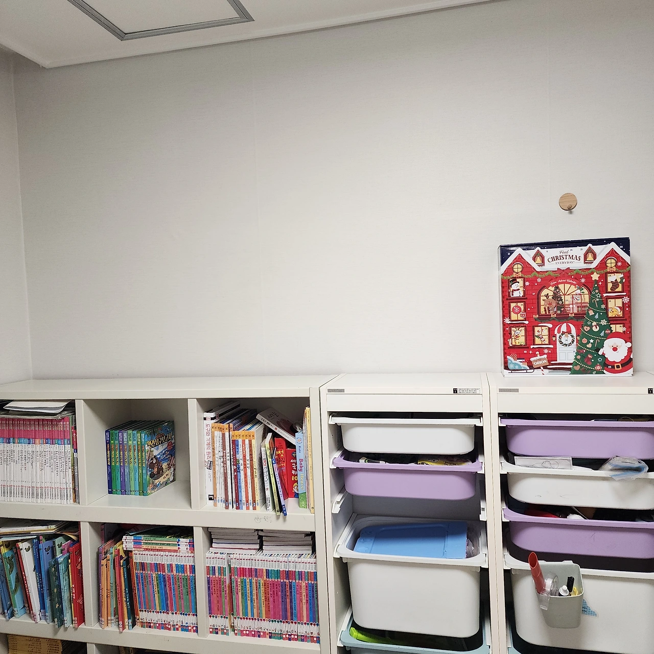 이제는 책과 장난감 정리 시스템을 만들 차례다.