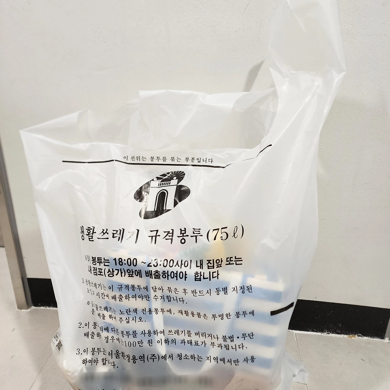 폐지 박스 하나를 가득히 버렸고 75L 종량제 봉투를 벌써 반 채웠다.