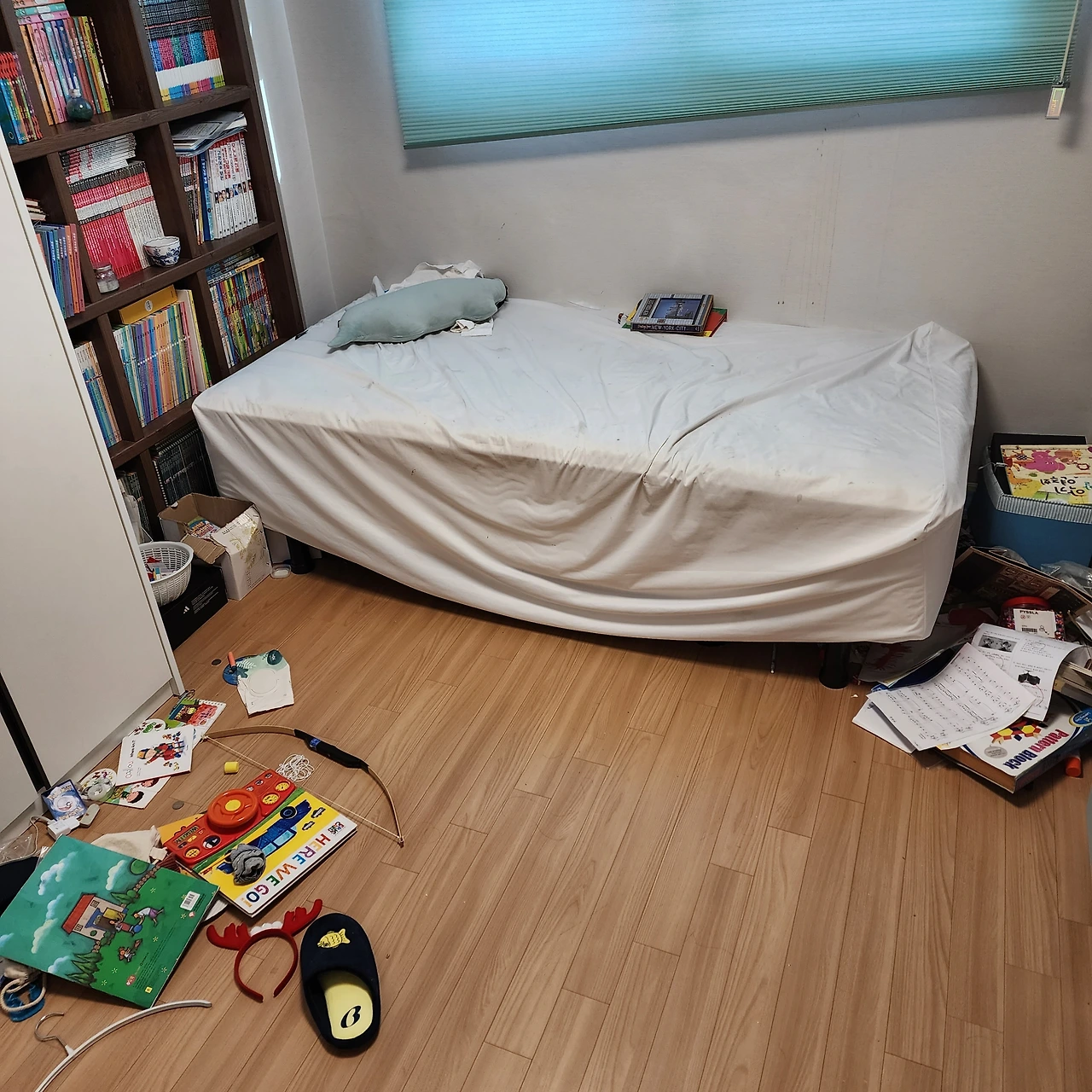 아이들 방이 많이 혼란스러운 상태였다. 감기에 걸려 골골거리며 아이들에게 스스로 치우게 했다.