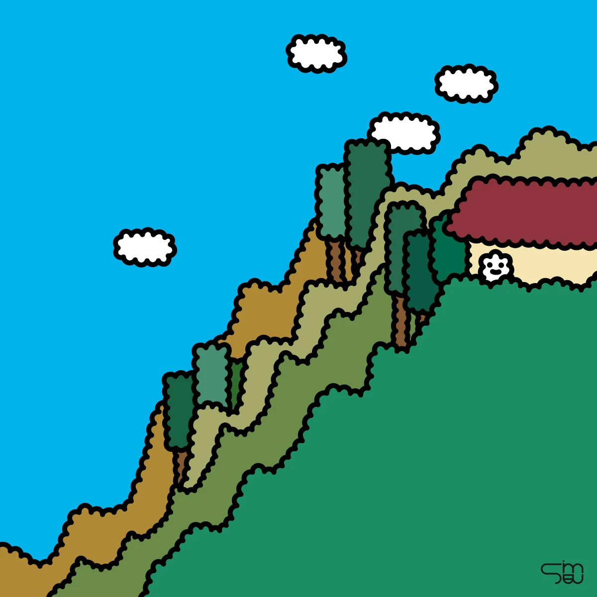 푸른 하늘과 초록의 나무들과.