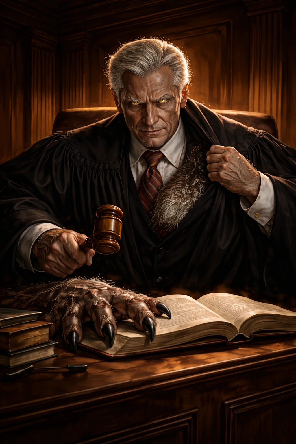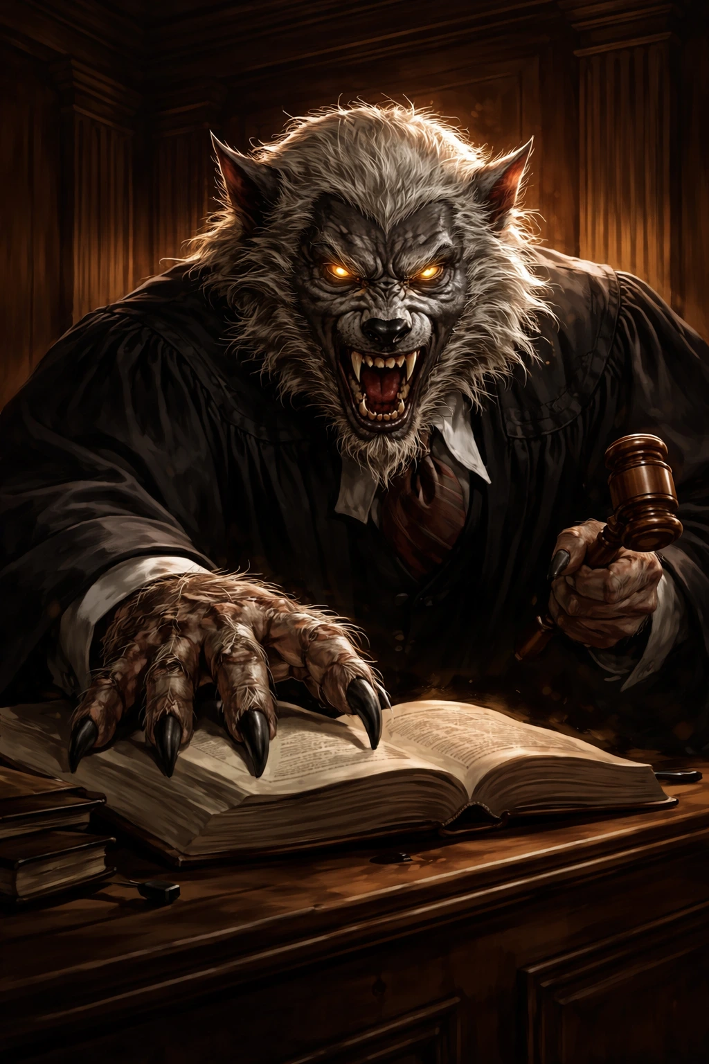 고등학교 때 나를 때리려는 학생들에게는 방어만 했다. 맞아도 그다지 안 아팠지만 한 번 맞아 주면 계속 때릴까 봐 그들이 지칠 때까지 방어를 해 주었다. 밤이 되면 육체의 변화가 심했다. 그러니 내가 마음먹고 타격을 갈기면 웬만한 사람은 죽을 수도 있을 것이다. 하지만 난 이 육체의 변화를 판사가 되어서는 하기 힘들 거라는 '정의 구현'을 위해 쓰기로 결심했다. 몇만 년 만에 깨달았다. 그렇다. 나는 달을 보면 모습이 변하는 웨어울프였던 것이다. 늑대인간이라고도 불리는 나는 어패크의 보호 아래 조심히 내가 맡은 일을 하고 있었다.