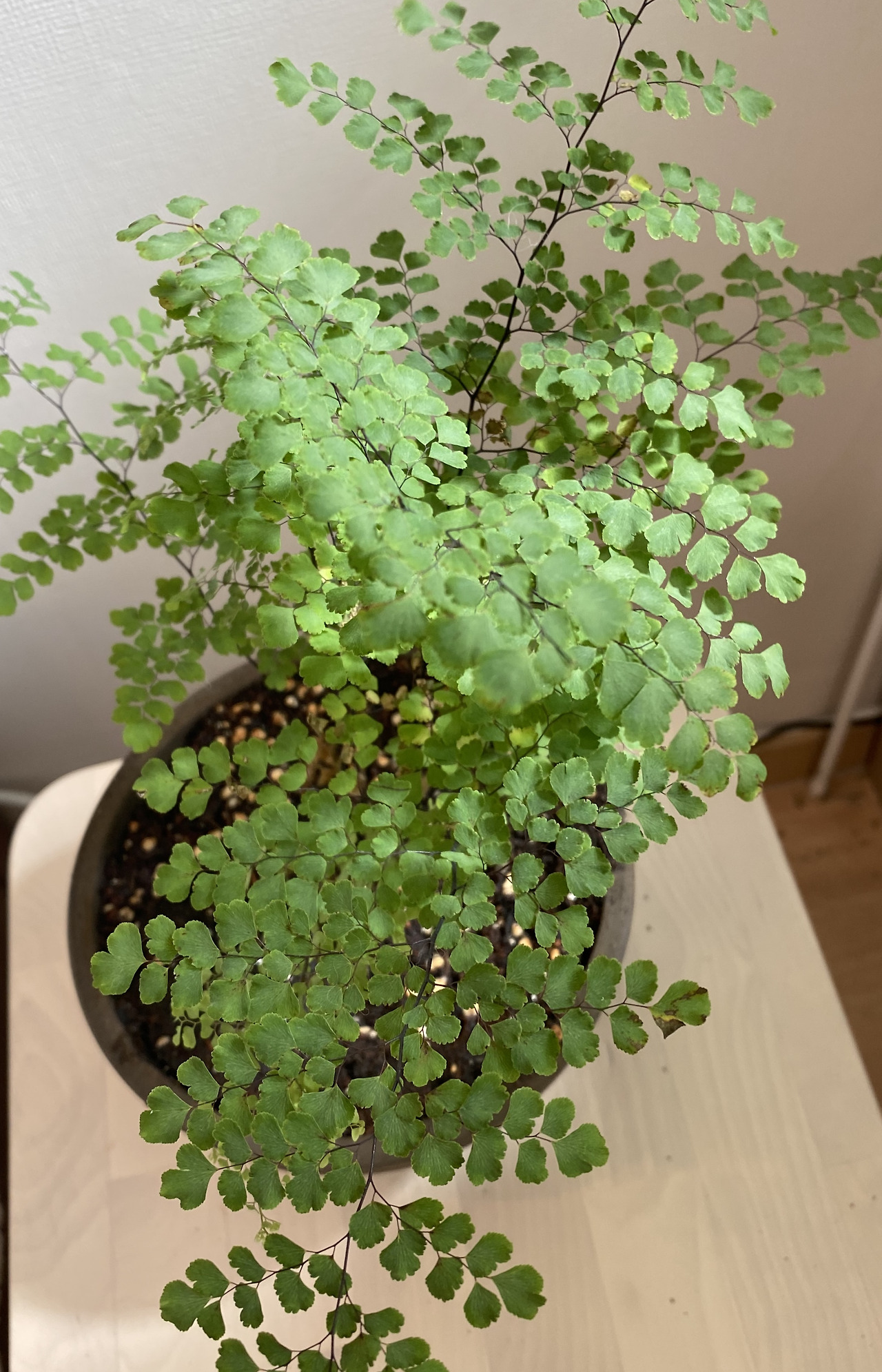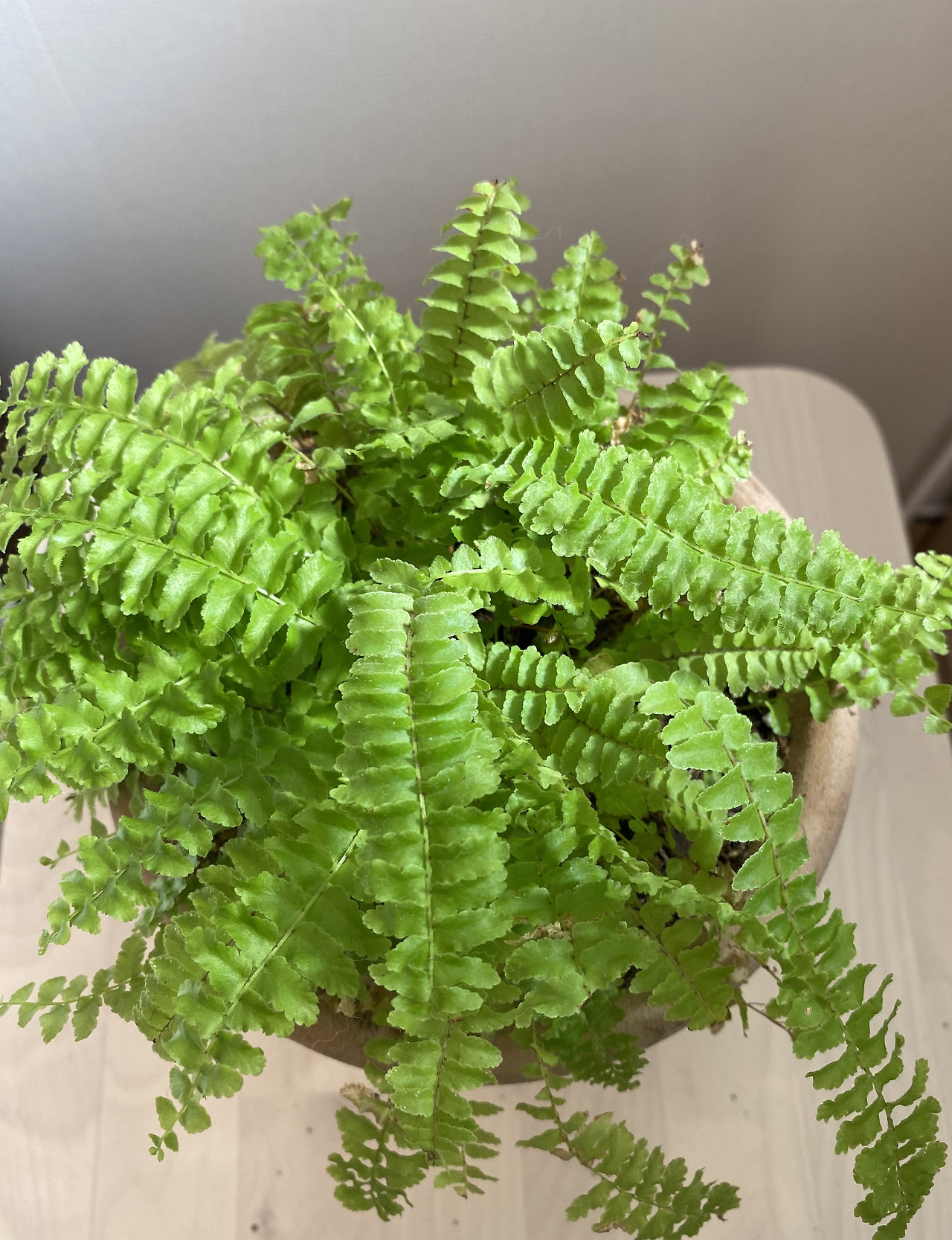 보통 기초화장품을 바르는 정도로는 얼굴이 건조해서 당겼고, 더 수분감이 있는 제품을 찾아야 했다. 손끝 발끝은 여지없이 건조해서 갈라졌다. 동시에 고사리들도 마찬가지였다. 축 늘어져 있고, 잎사귀가 타들어가고 있었다. 공중 습도에 예민한 식물들이다 보니, 타 들어간다고 물을 계속 더 주면 과습으로 죽어버린다. 어떻게든 방 안의 습도를 올려야만 했다. 해결책이 찾아, 지금은 침대 옆 스툴에 분무기를 두고 수시로 뿌려주고 있다.
