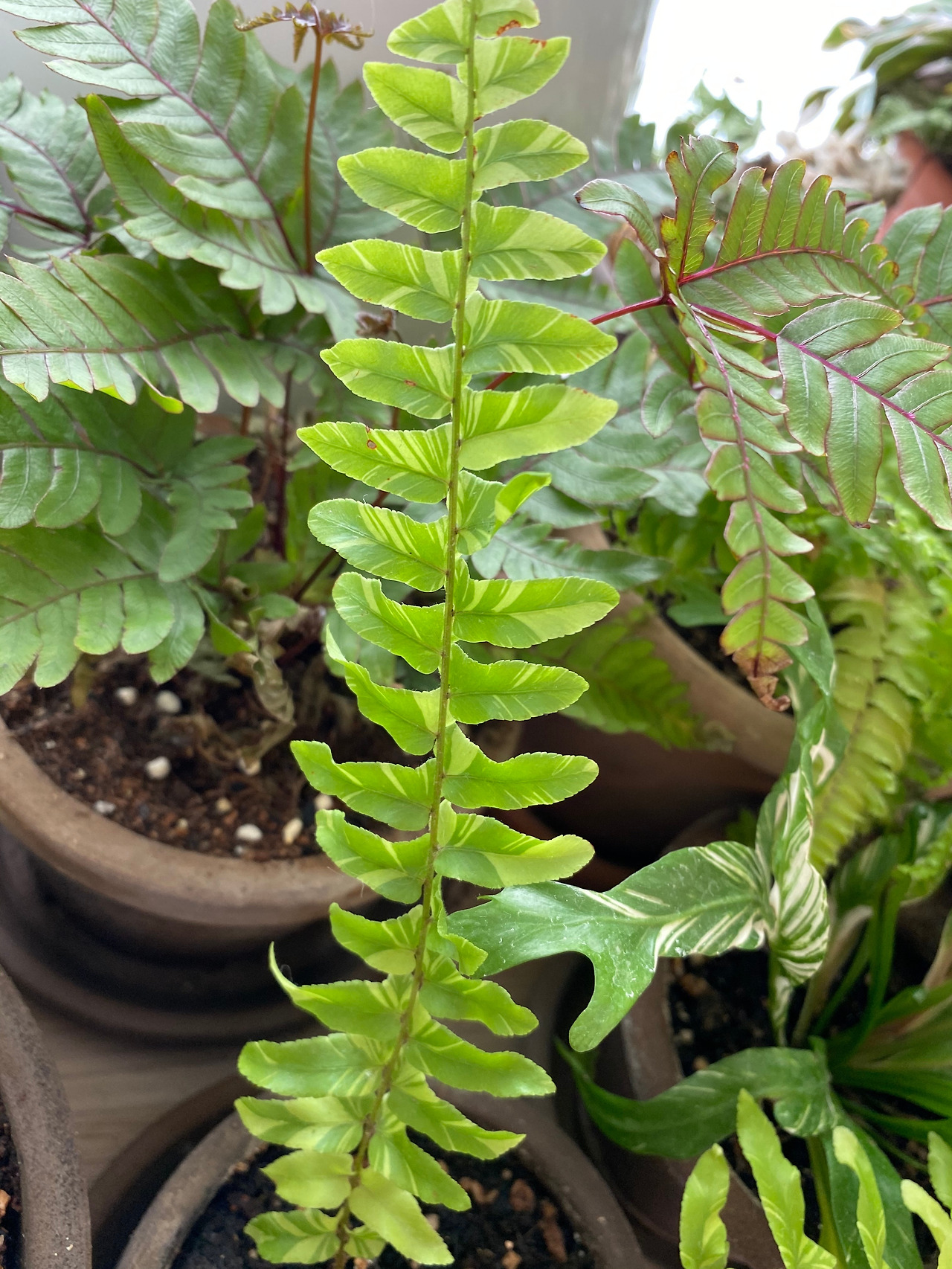 무늬보스턴 고사리의 경우도 애매하다. 이 식물은 해를 받아야 무늬가 발현이 잘 되는데, 새 싹이 나면서부터 적당히 해를 쬐어주어야 한다. 그런데 식물 자체가 고사리다 보니 해를 좋아하는 식물이 아니다. (대부분의 고사리는 음지식물이다) 그러니 고사리치고 해를 받을 수 있는, 묘한 자리를 찾아줘야 한다.