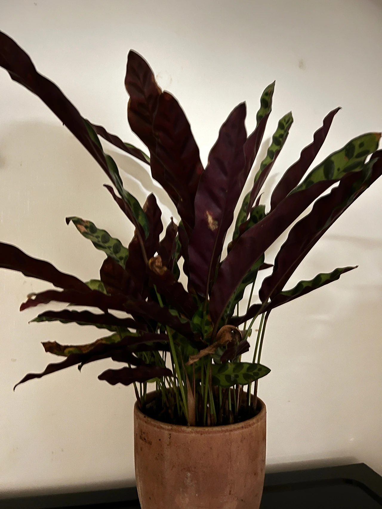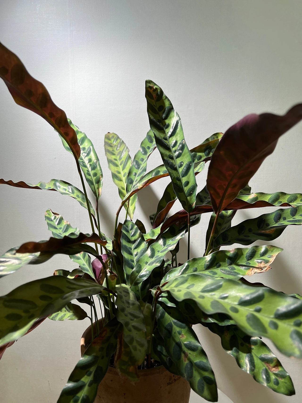 특히 잎의 길이가 길쭉한 ‘인시그니스(Calathea Insignis)’는 그 모습을 더 분명하게 보여준다. 저녁부터 밤새 그 길쭉한 잎을 촘촘히 모아 두다가 아침에 해가 뜨면 부채꼴로 잎들을 펼쳐낸다. 나는 침대 근처에 인시그니스를 두고 키우는데, 매일 봐도 매일 신기하다.