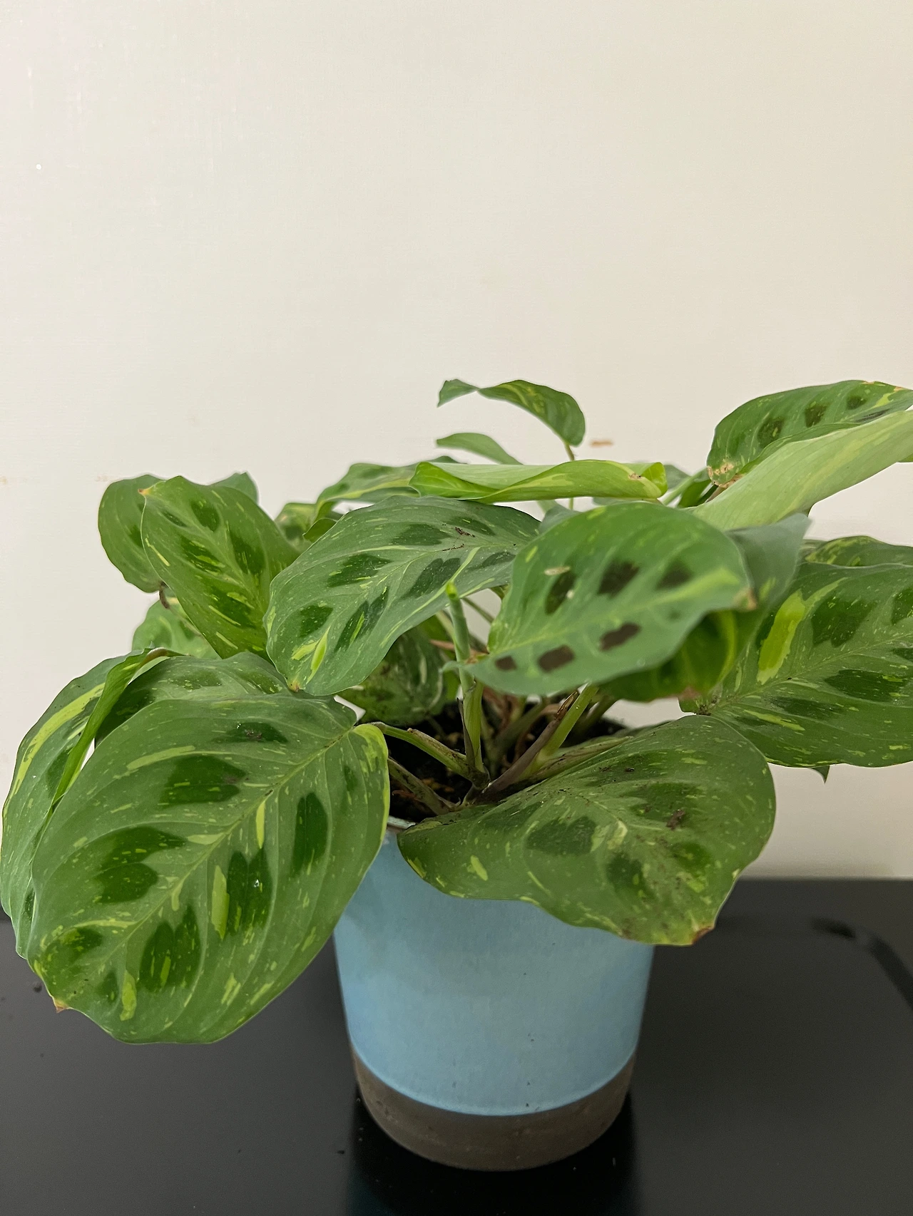 우울과 불안으로 하루치의 약이 아주 많아졌을 때, 그럼에도 약으로 나아지기는 커녕 겨우 하루씩을 버텨내고 있을 때, 나는 인시그니스의 모습을 관찰하며 다른 칼라데아들도 관찰했다. 인시그니스만큼은 아니지만 분명히 잎이 모아졌다가 펼쳐졌다를 반복했다. 게다가 칼라데아는 잎의 무늬가 각자 다른데, 각자 모두 특이하고 아름답다. 이 모습들을 관찰하며 나는 한동안을 보낼 수 있었다. 덕분에 의욕도 없이 축 쳐져서 매일 ‘사는게 어떤 의미가 있나?’라고 생존하던 암흑기를 혼자가 아니라는 느낌을 받으며 보낼 수 있었다. 칼라데아의 출퇴근이 나에게 그저 ‘식물의 신기한 현상’ 그 이상의 의미를 갖게 된 것이다.