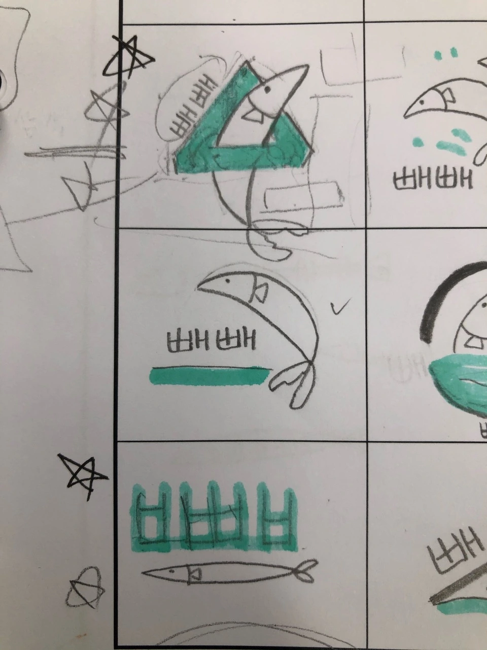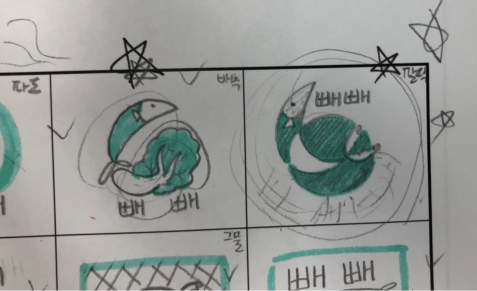 이제 이 언어의 느낌을 시각언어로 잘 버무려 표현하면 된다. 아이디어 스케치 활동에 필요한 것은 영감을 업시켜 줄 음악이다. 특히 스타벅스 브랜드 음악과 같은 스타일이 좋다. 그리고 아이디어 스케치를 할 때는 프리스타일 좋긴 하지만 아이들의 참여와 집중을 위해 칸이 있는 활동지를 제공한다.