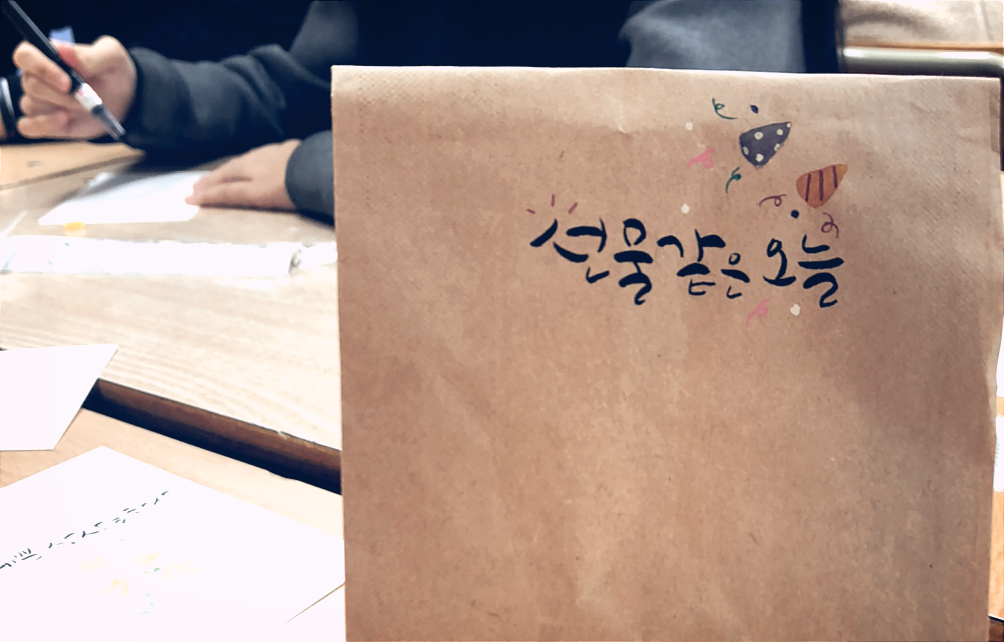 세 번째 날, 오늘도 반짝 반짝이는 아이들, 그보다 더 빛나는 선생님, 일상 속의 따뜻한 캘리 이야기와 딸에게 이야기하듯 꿈에 대하여 진심 어린 이야기를 전해주시는 선생님의 강의는 정말 어디서도 만날 수 없는 명강의였다. 직접 재료 준비를 다 해오신 선생님의 정성은 또 어떻게 설명해야 할까?