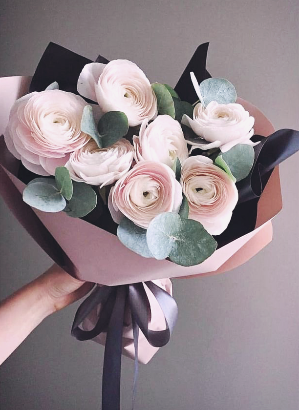연분홍빛 포장지 속 가득 담긴 꽃만 보인다.
