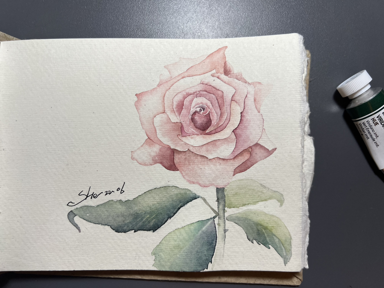 두 번째 그려본 장미의 색이 왠지 마음에 들지 않아,