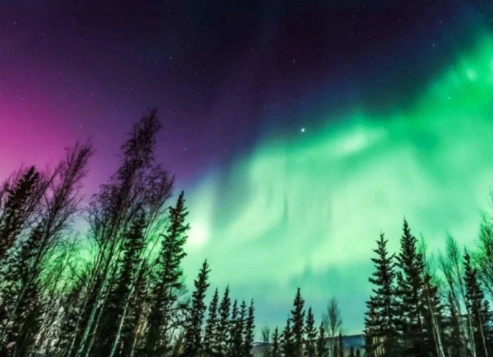 어느 곳에서 보라색 빛이 내린다.